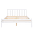 Bring simplicity and elegance into your bedroom with this white wooden bed frame, designed with clean lines and a refined finish that blends effortlessly with any décor. Crafted from premium pine wood and P2 class MDF boards, it is coated in eco-friendly, non-toxic paint for a safe and healthy sleeping environment. The frame features a sturdy headboard and footboard for added security, while the 21.5 cm clearance beneath the slats provides convenient storage space for baskets or other belongings.