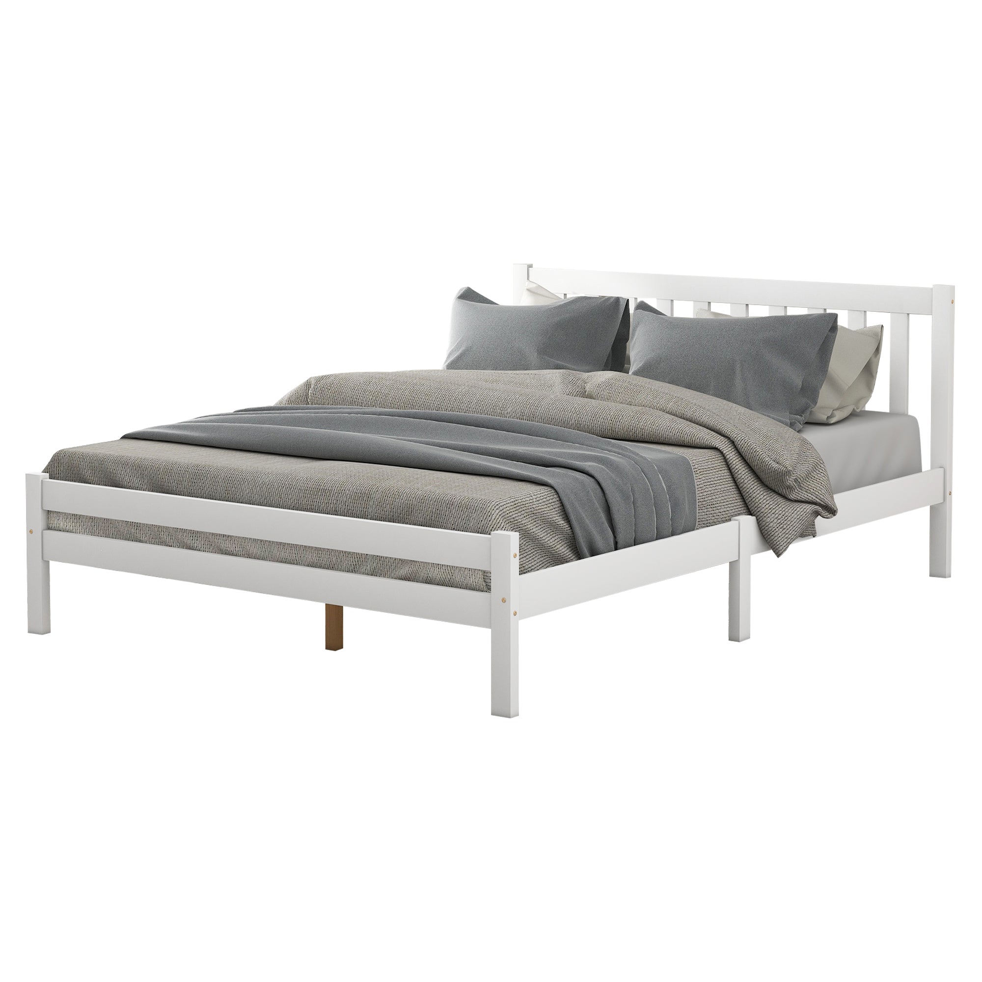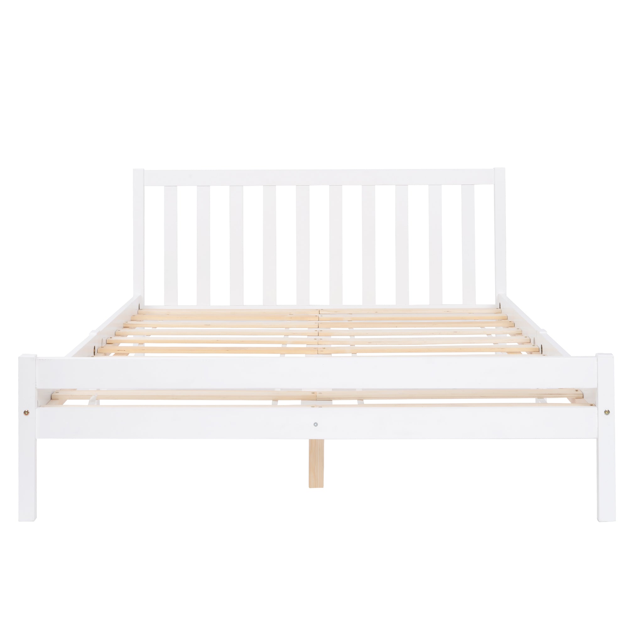 Wooden Bed Frame, Double Bed 4ft6 Solid Wooden Bed Frame, Bedroom Furniture for Adults, Kids, Teenagers, 135 x 190 cm (White)