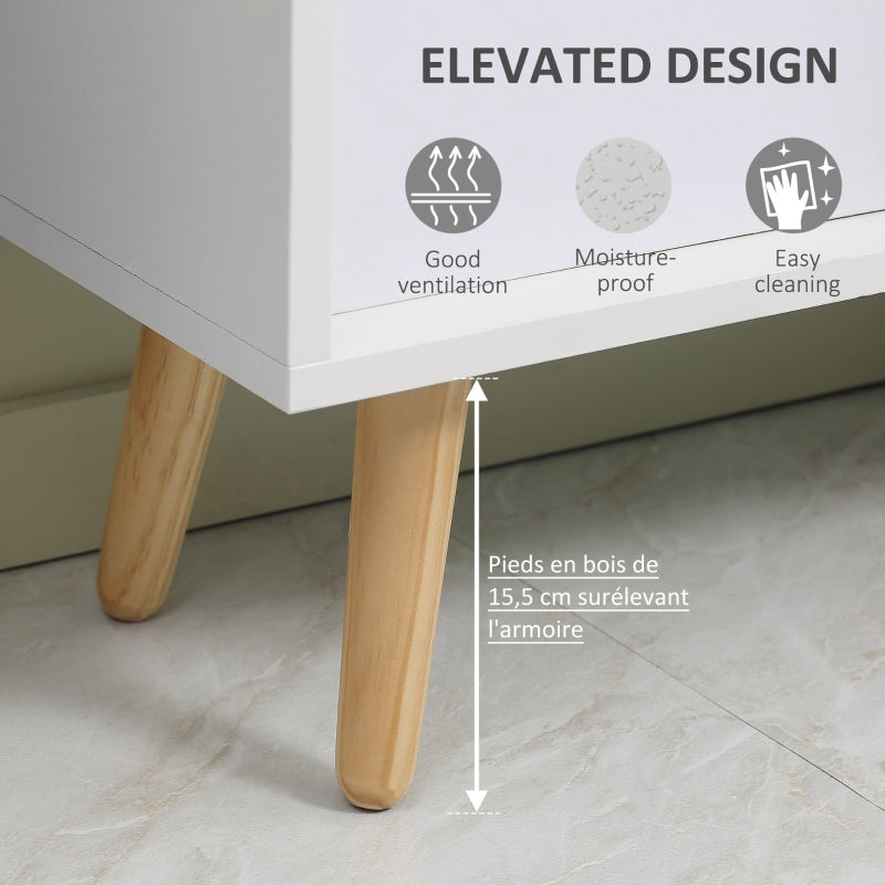 Two Flip Drawer Shoe Cabinet, Slim Storage Adjustable Shelves, White