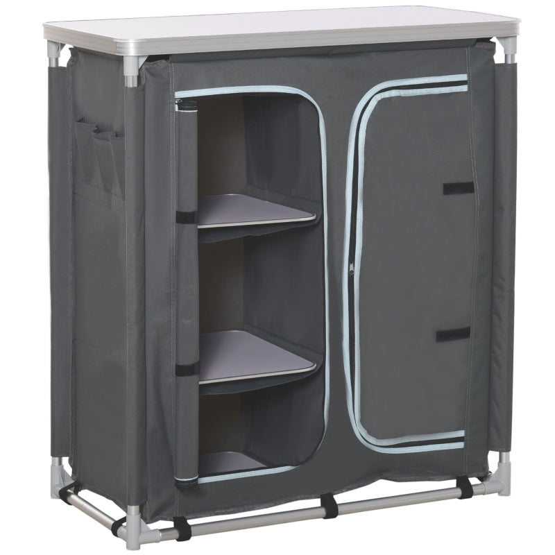Camping Cupboard Kitchen Station Cook Table with 3-Shelf Storage Organiser, Aluminium