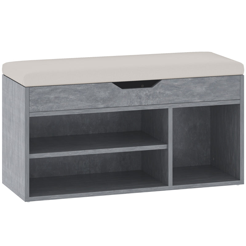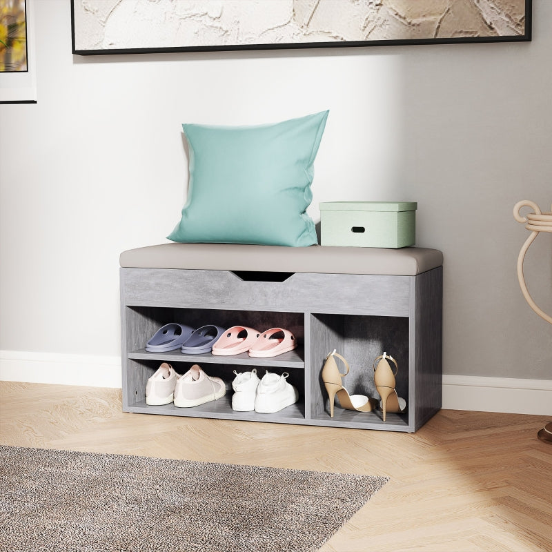 Shoes Cabinet Bench with Hidden Storage and Padded Seat, Grey Wood Grain