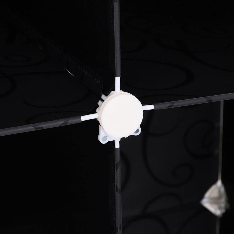 Portable Wardrobe 12 Cube Modular Storage Cabinet with 2 Hanging Rails Plastic White and Black