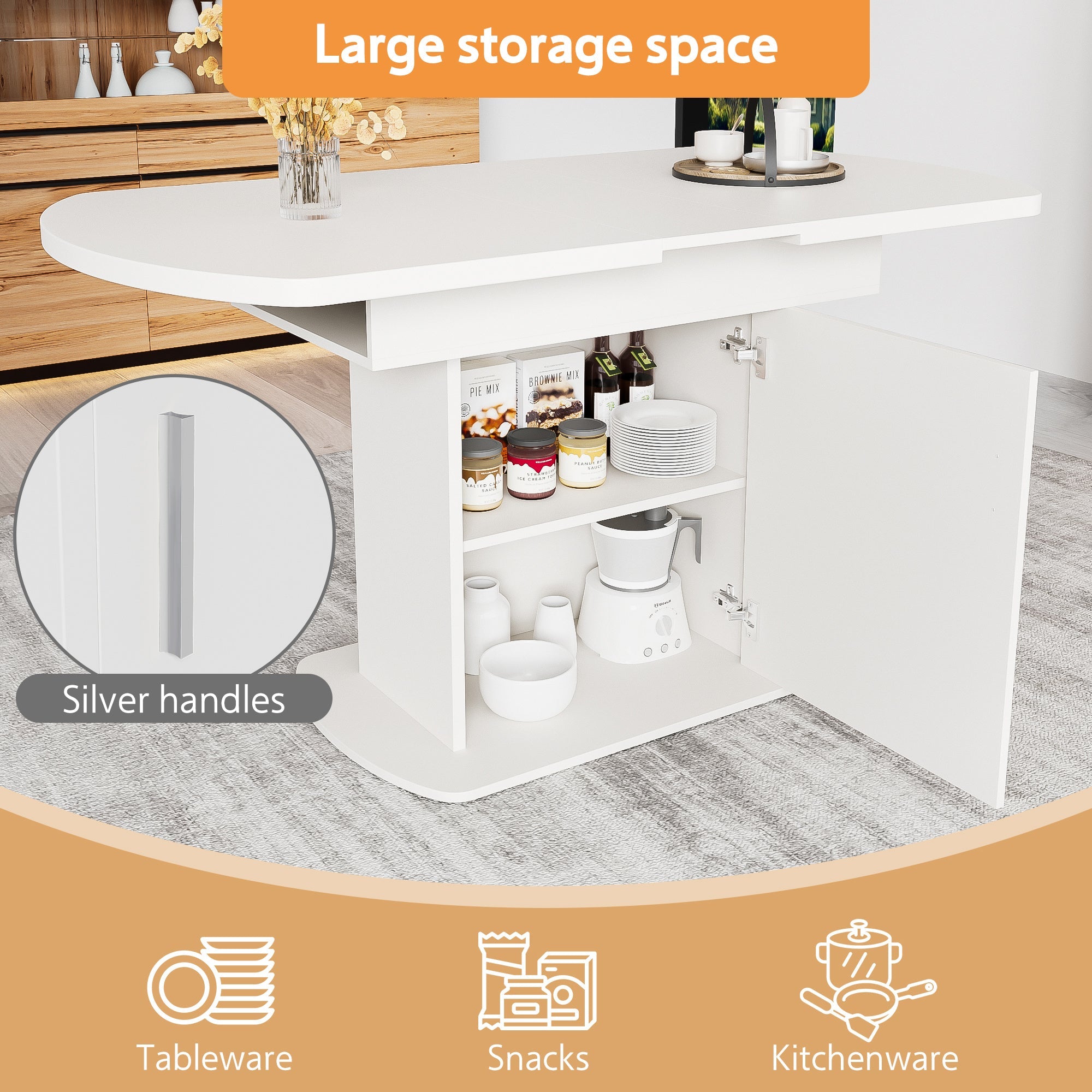 Freestanding Kitchen Cabinet, Multi-Storage, White