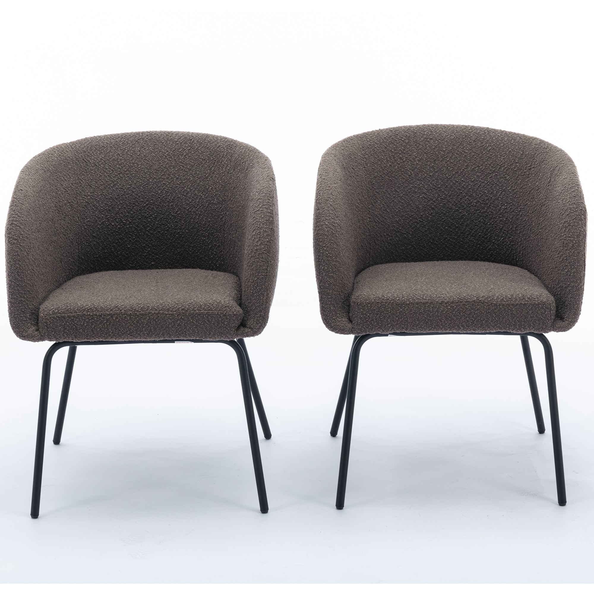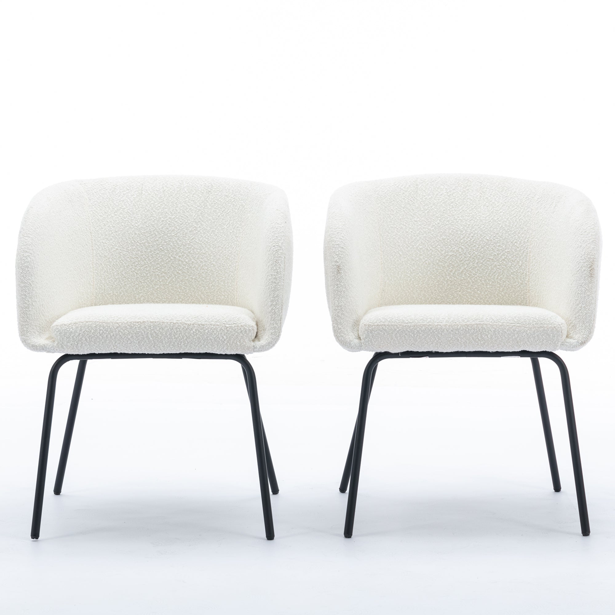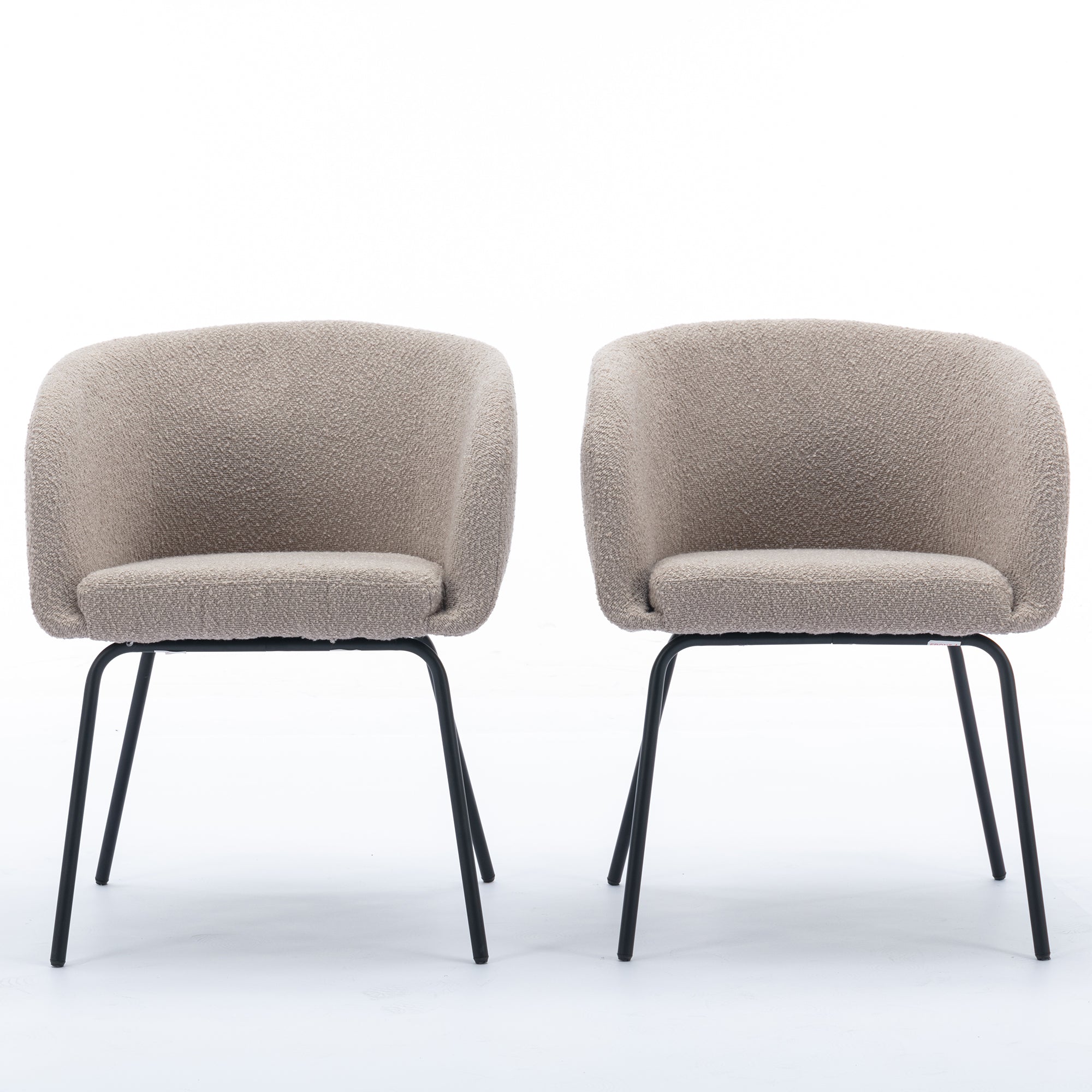 Boucle Fabric Armchair Accent Chair Dining Chair with Black Powder Coating Metal Leg, Beige (2 Pack)