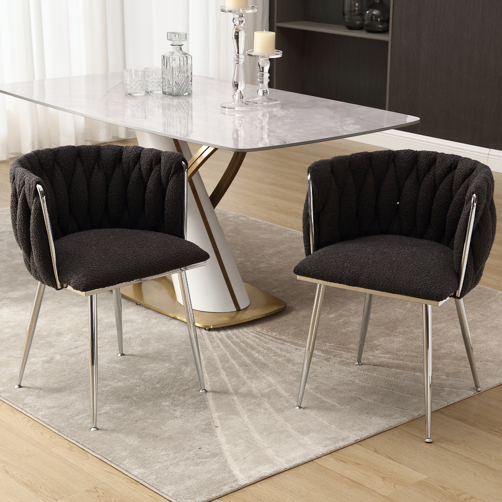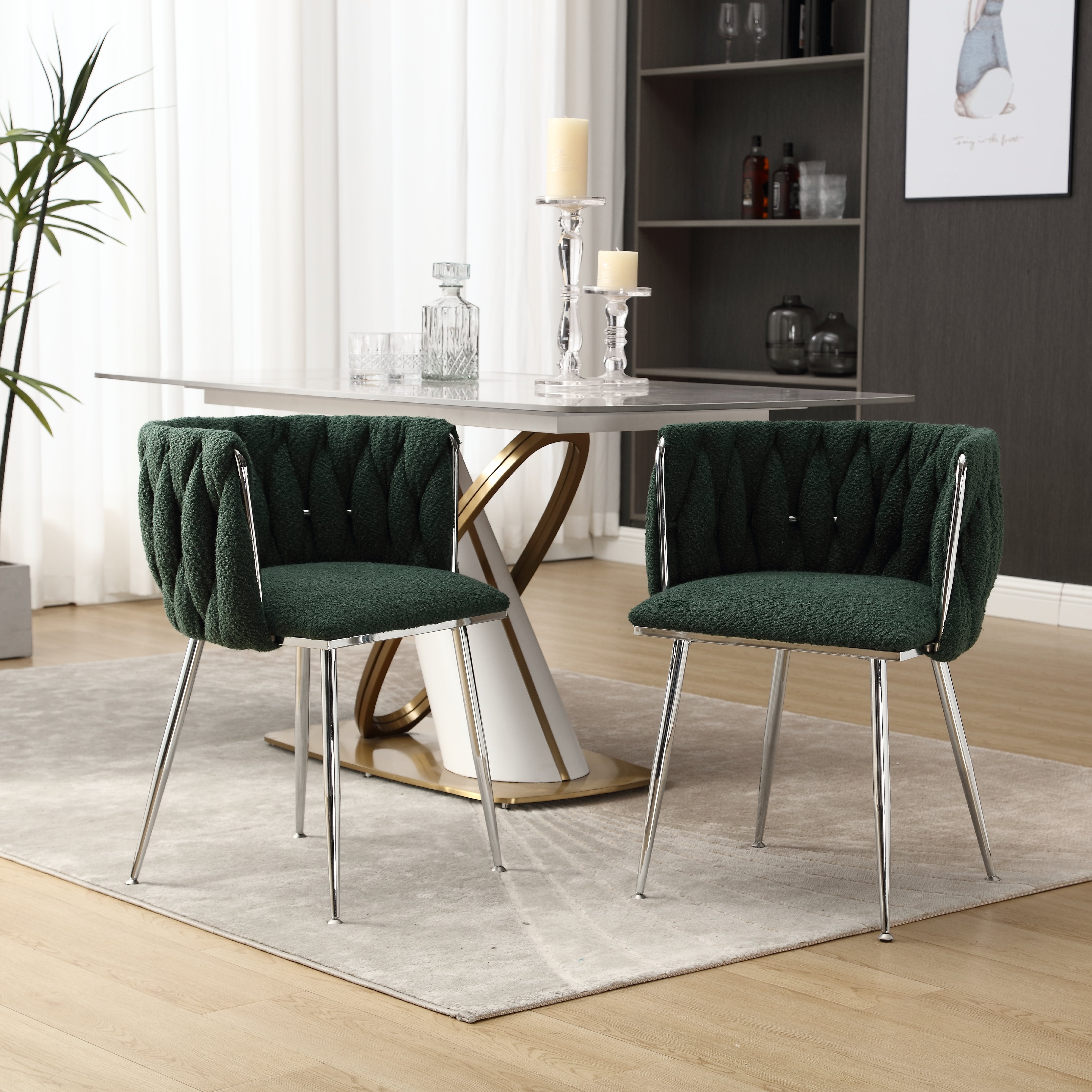 GOMYWAY Modern Hand Weaving Dining Chairs Set of 2, Boucle Upholstered, Emerald