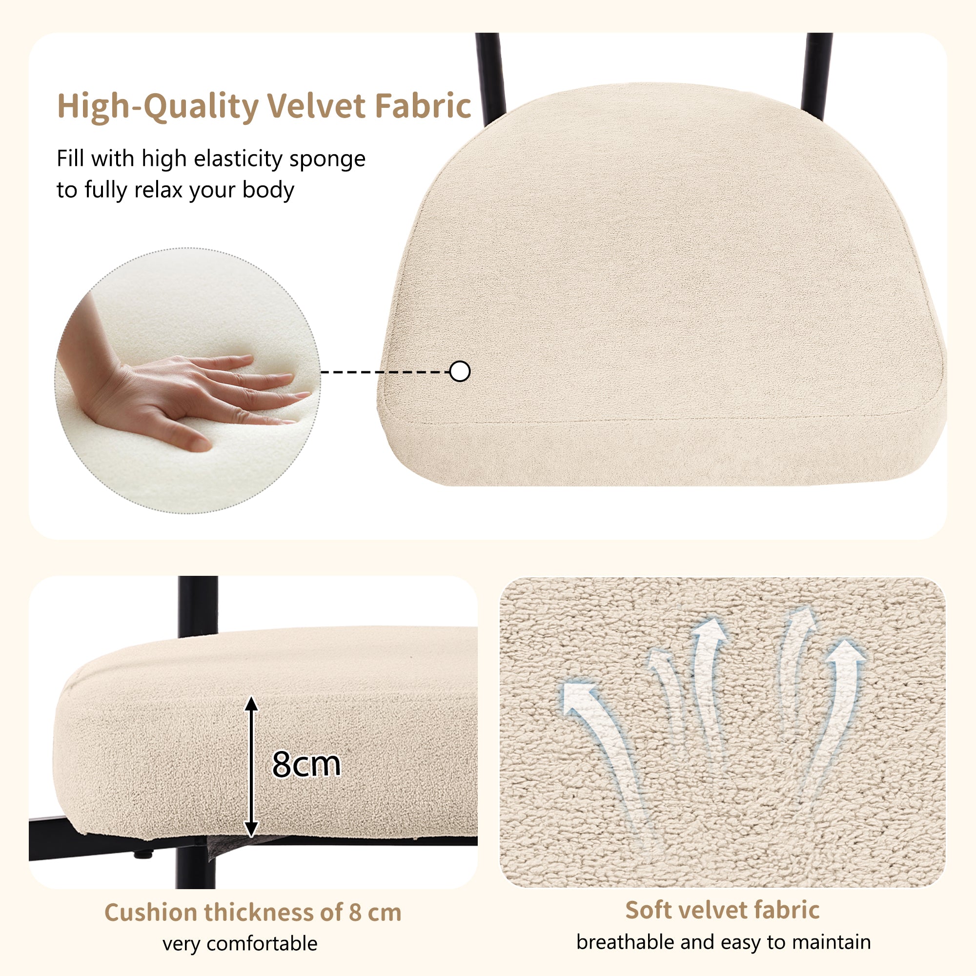 3. High quality velvet material, luxurious feel: The surface of the chair is made of high quality soft fabric that is soft and delicate to the touch, combining durability and fashion. The soft plush material not only adds to the visual beauty of the chair, but also provides a pleasant tactile experience and enhances the overall style of your home. When you sit on it, you can enjoy the luxurious feeling of warmth and softness.