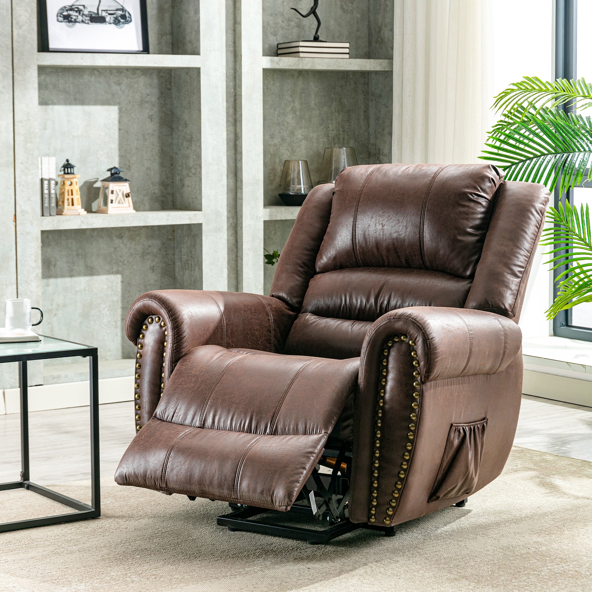 Power Massage Lift Recliner Chair, Heat, Vibration, Remote Control, PU Leather Brown