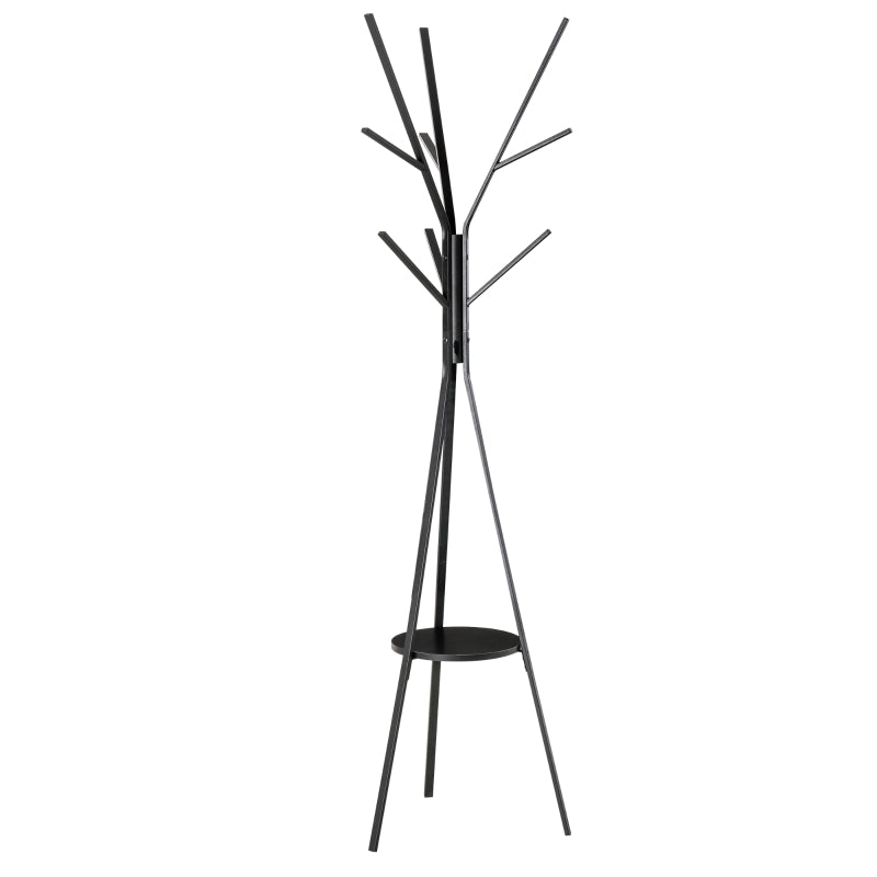 Freestanding Coat Rack Stand, 9 Hooks & Shelf, Metal, Black