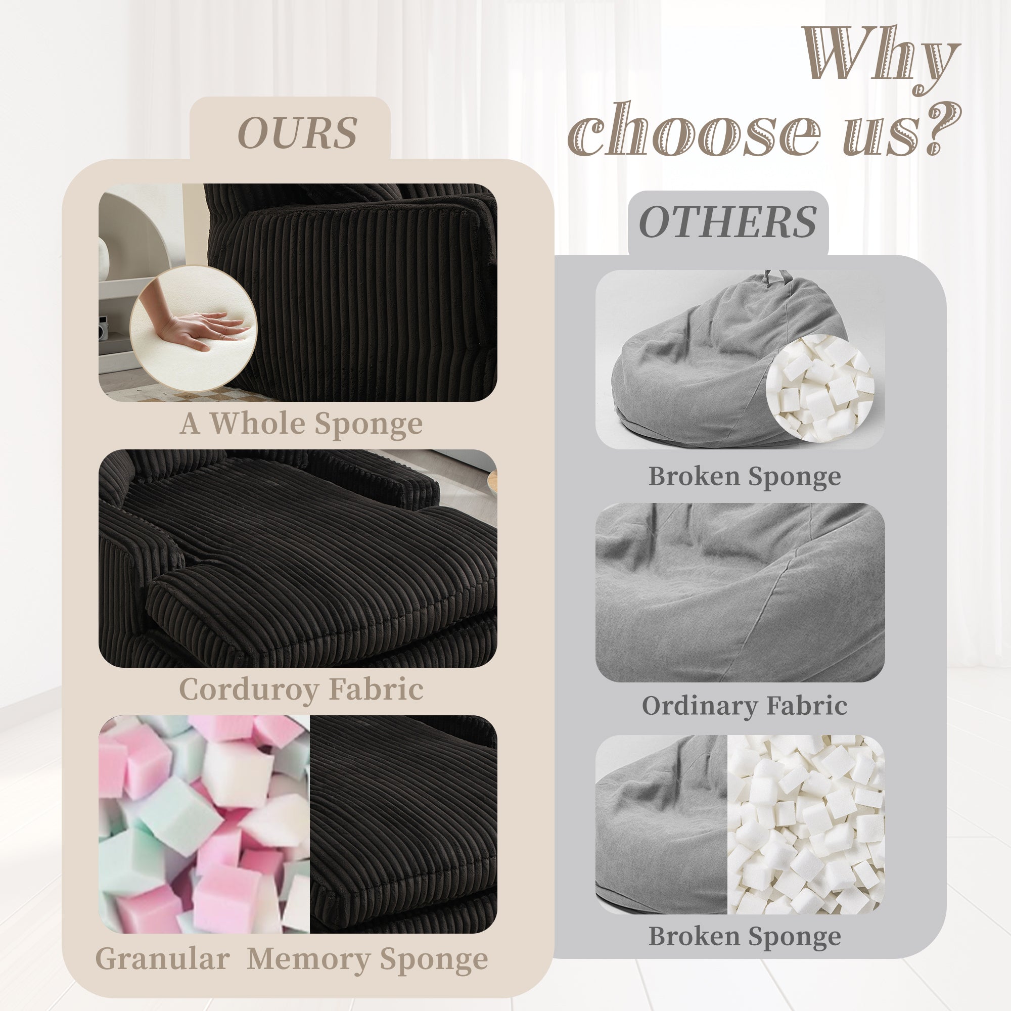 Soft Tufed Foam Bean Bag Chair with Teddy Fabric, Ivory White