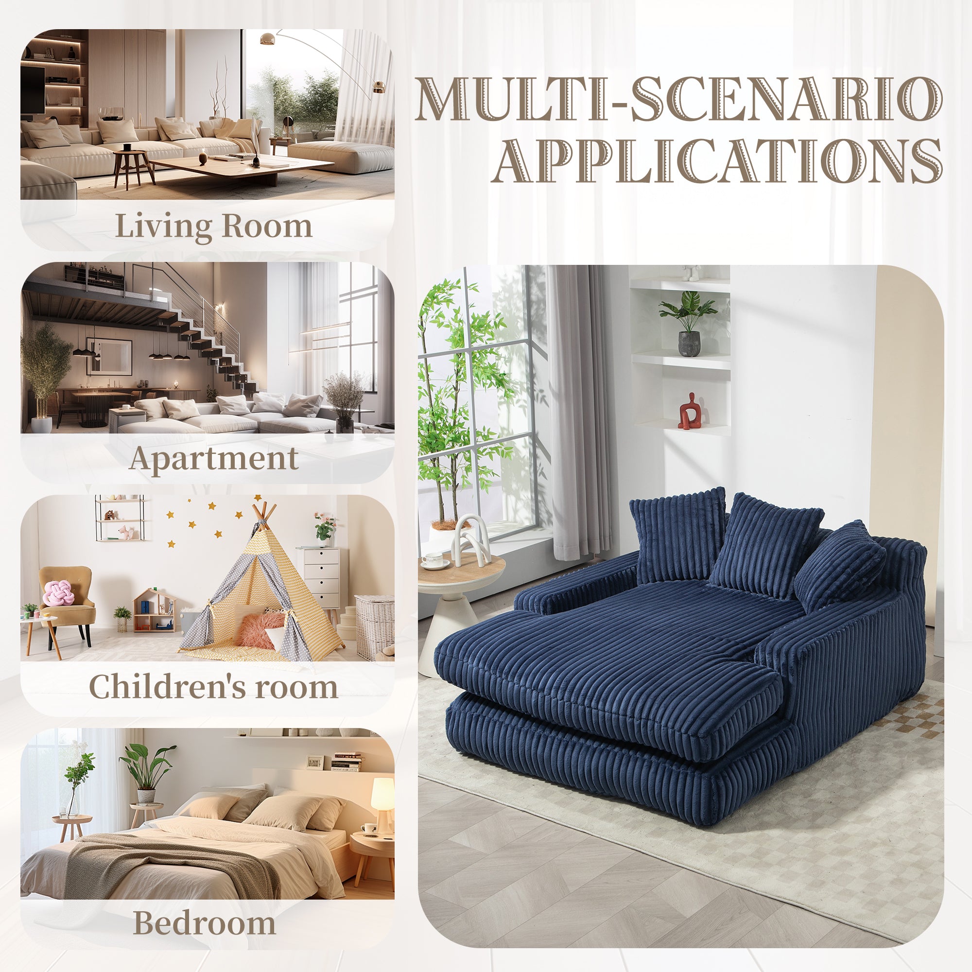 GOMYWAY Oversized Chaise Lounge Sofa Sleeper Chair with 3 Throw Pillows, Navy