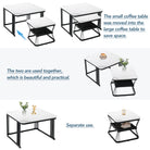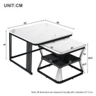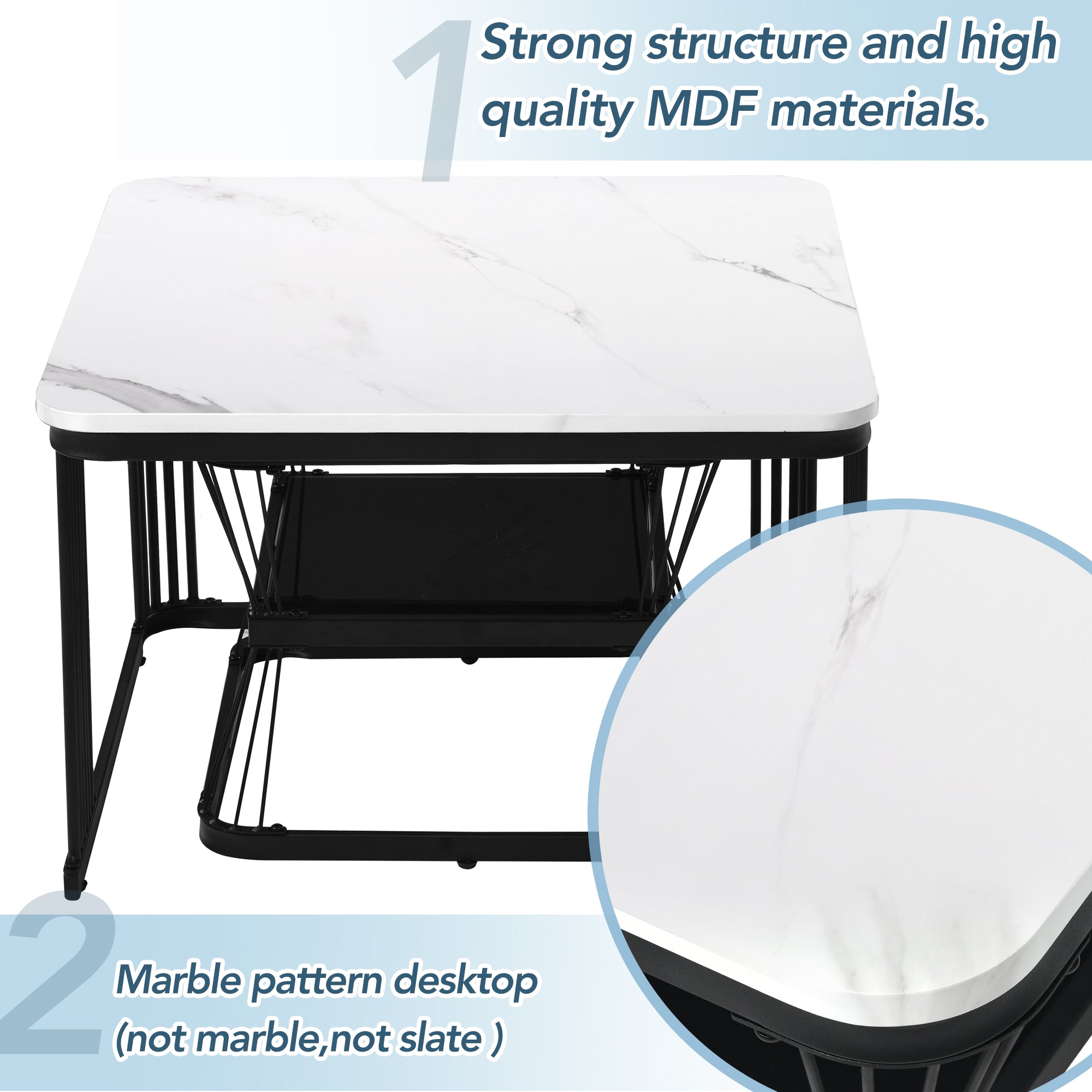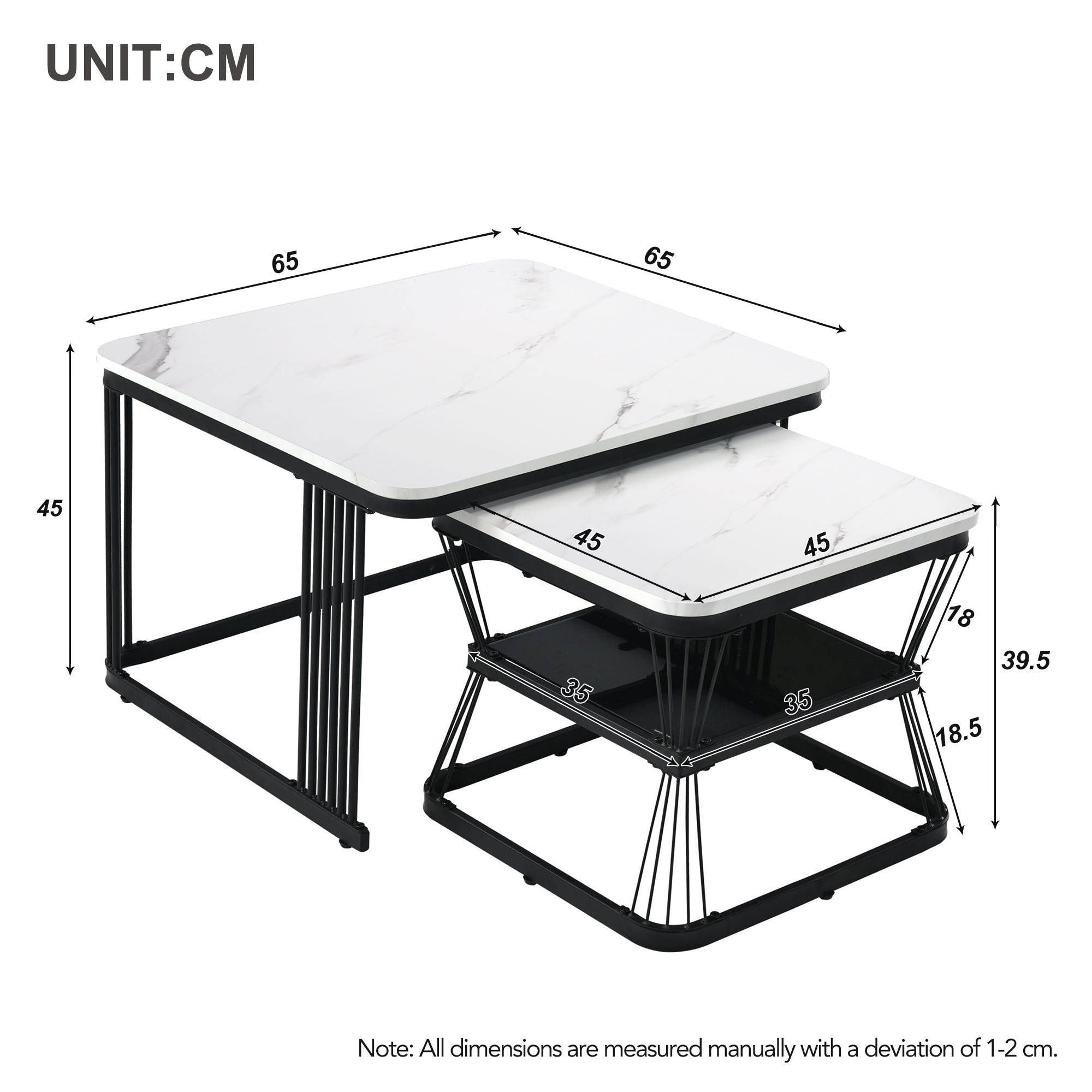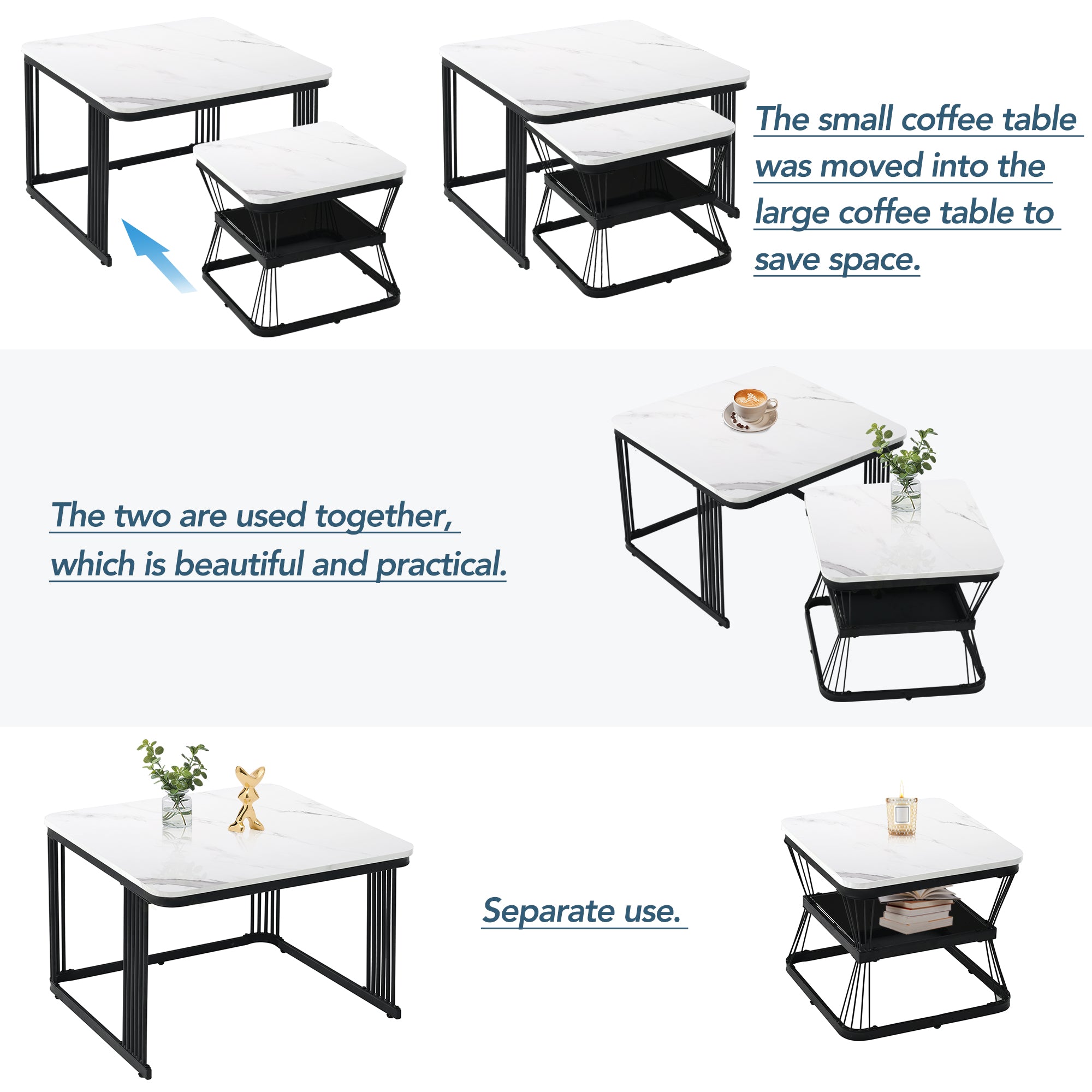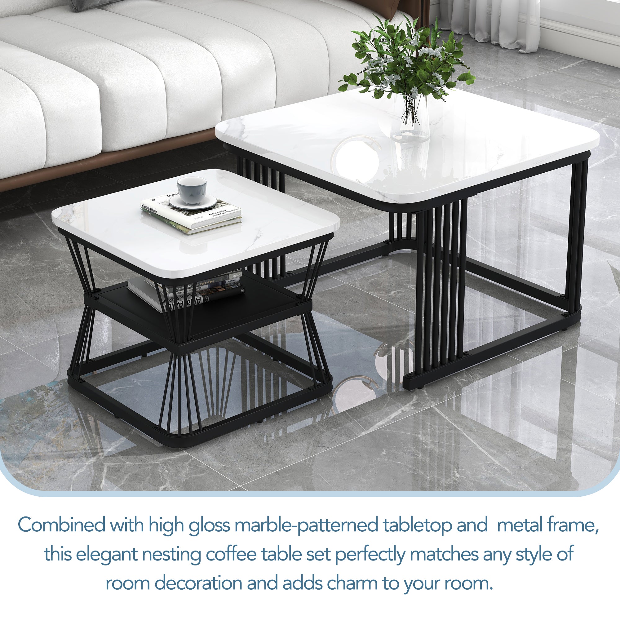 2-Piece Nesting Coffee Table Set with Marble Pattern White Top and Black Metal Legs