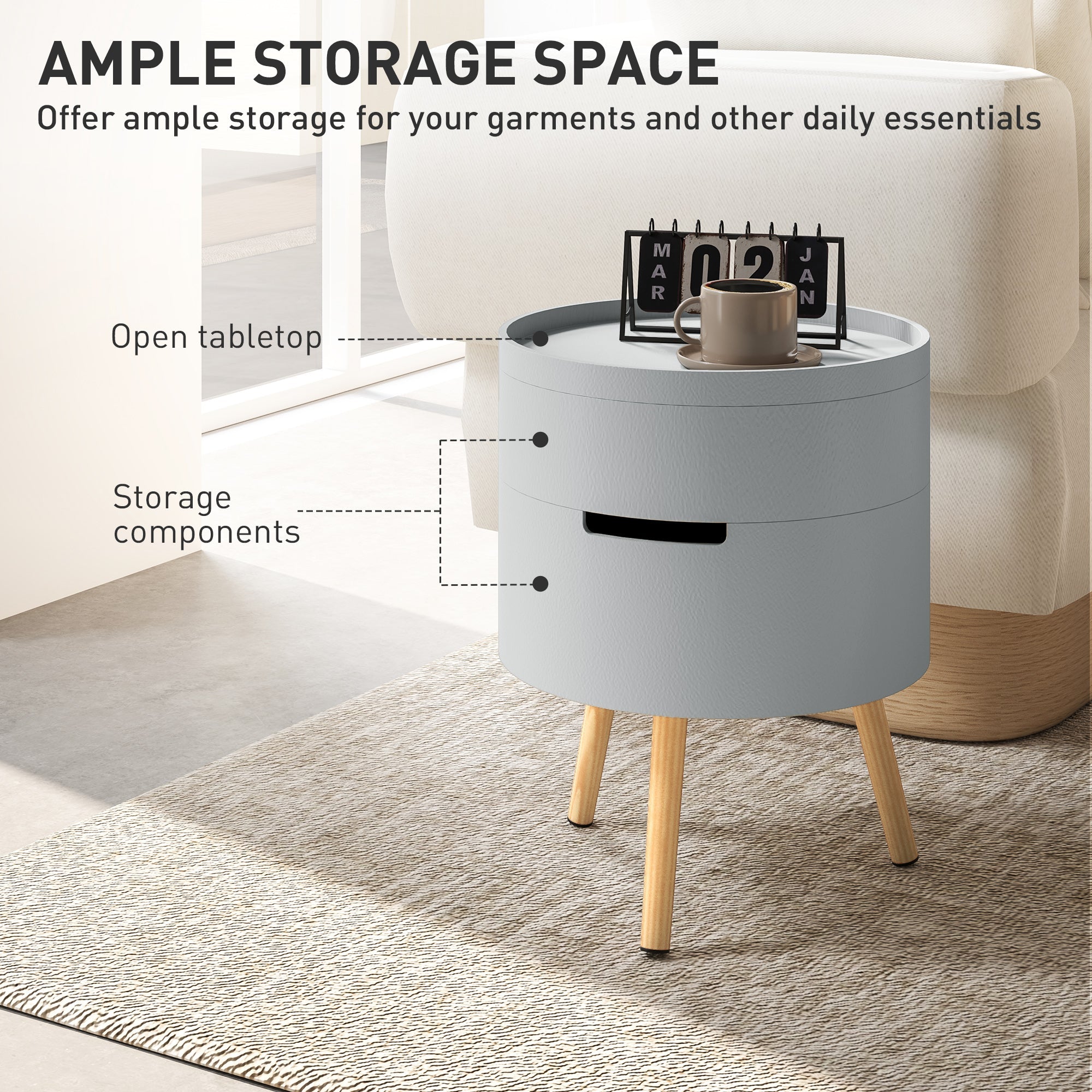 3-Tier Design: This small side table includes a tray tabletop for placing a cup of coffee or snacks, and two hidden storage compartments for your keys, remote control, books, and other private items.