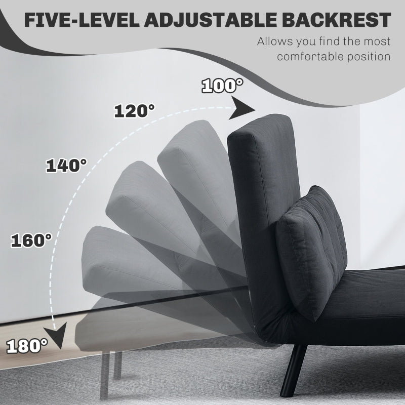 4-in-1 Double Sofa Bed, Convertible with Pillows, Velvet-Feel Black