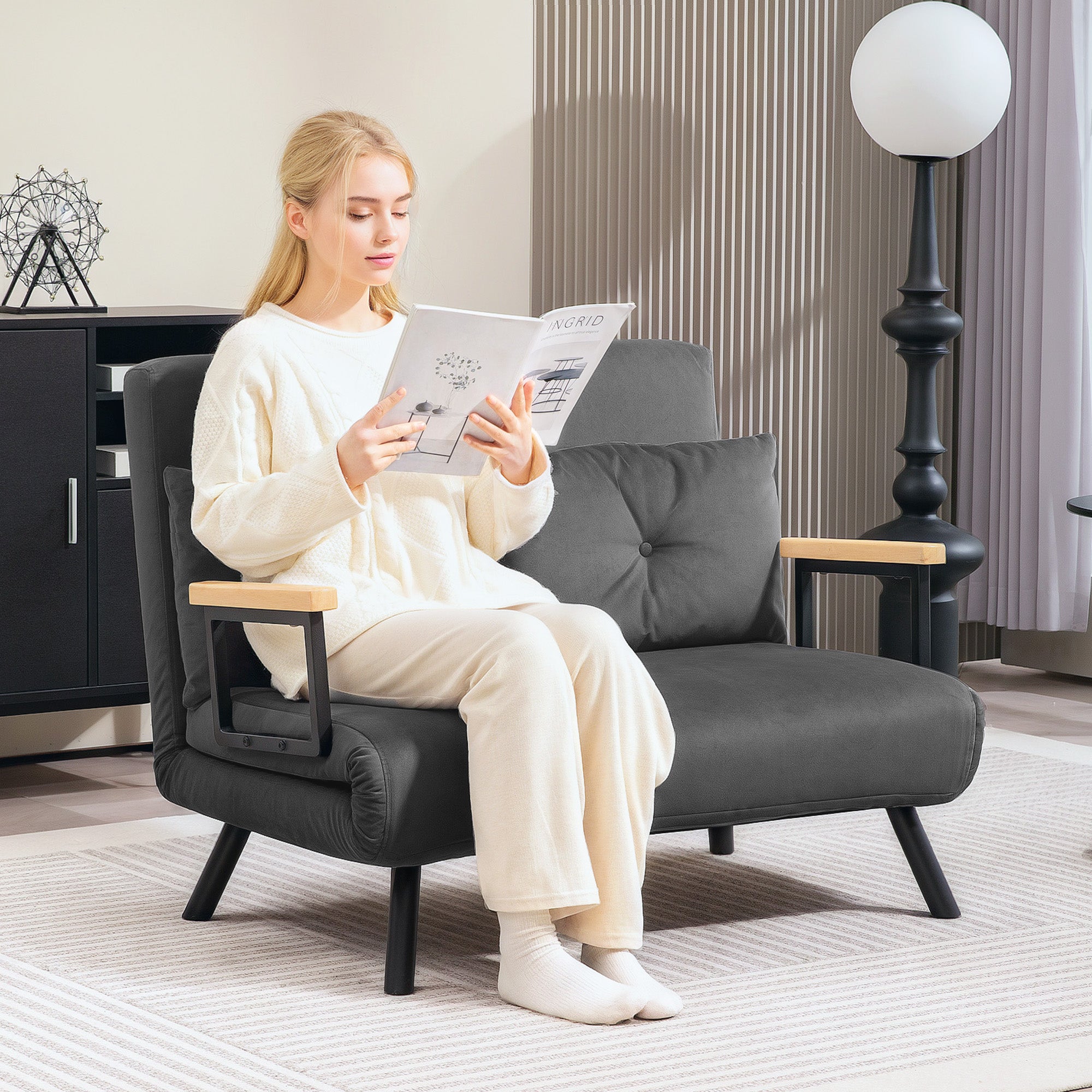 Simple, versatile design: The neutral colorway and wooden armrests make this two-seater sofa bed a relaxed and easy design—it works great in the office, living room, bedroom, or guest room.