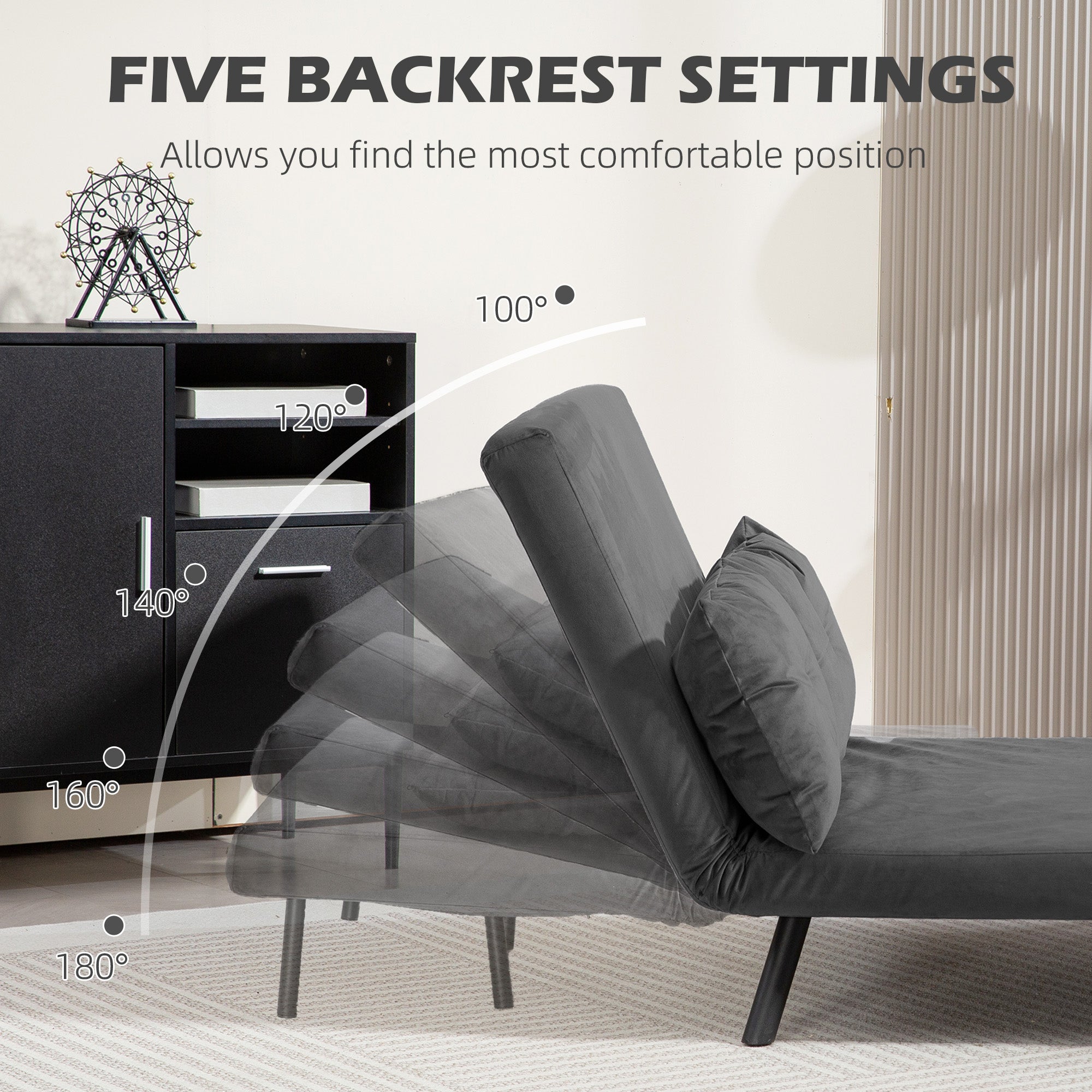 4-in-1 Double Sofa Bed with Pillows, Velvet-Feel Dark Grey