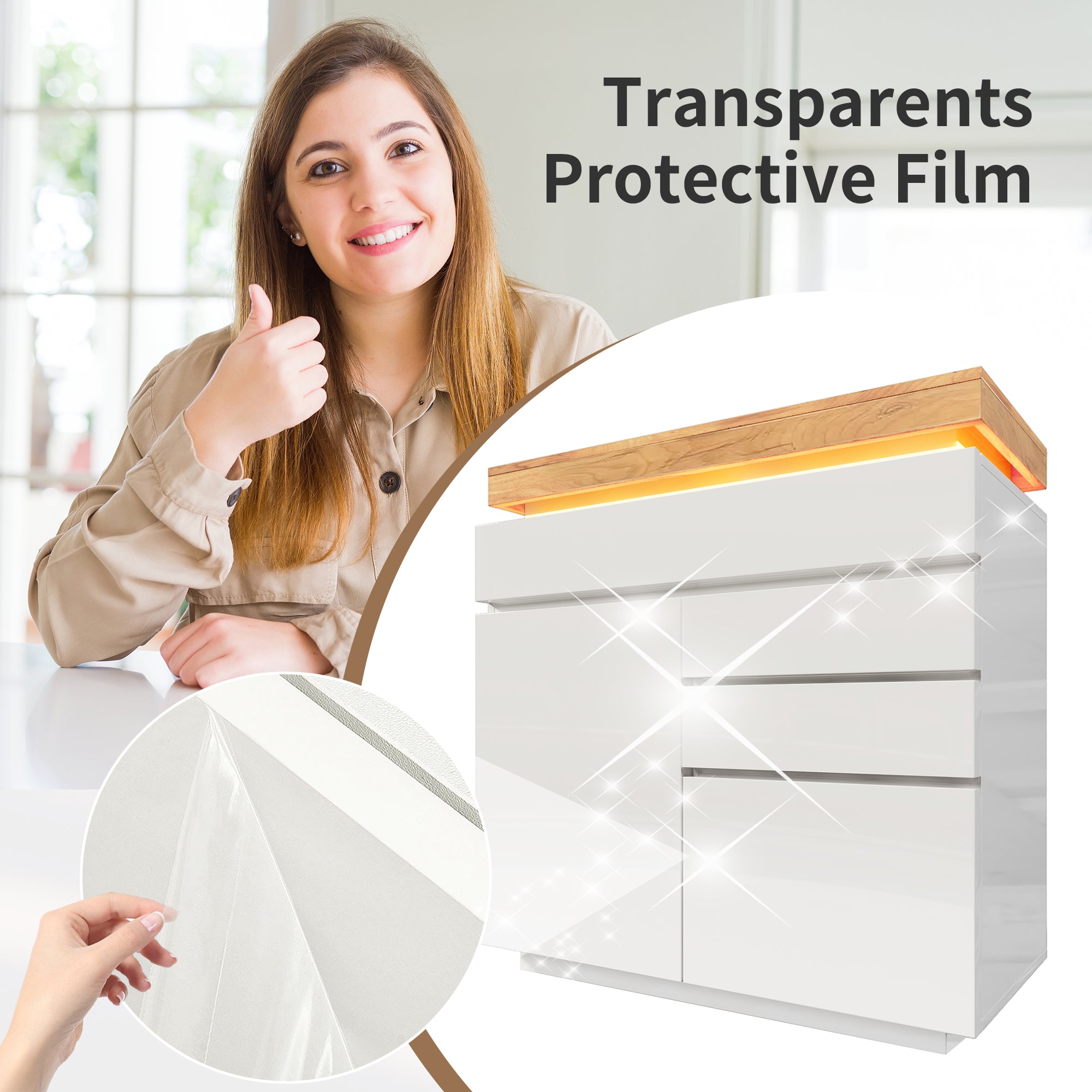 Assembly is required. Please remove the protective film before use to maintain a clean appearance. The cabinet comes with an anti-tip device for added safety, making it especially suitable for homes with children or pets.