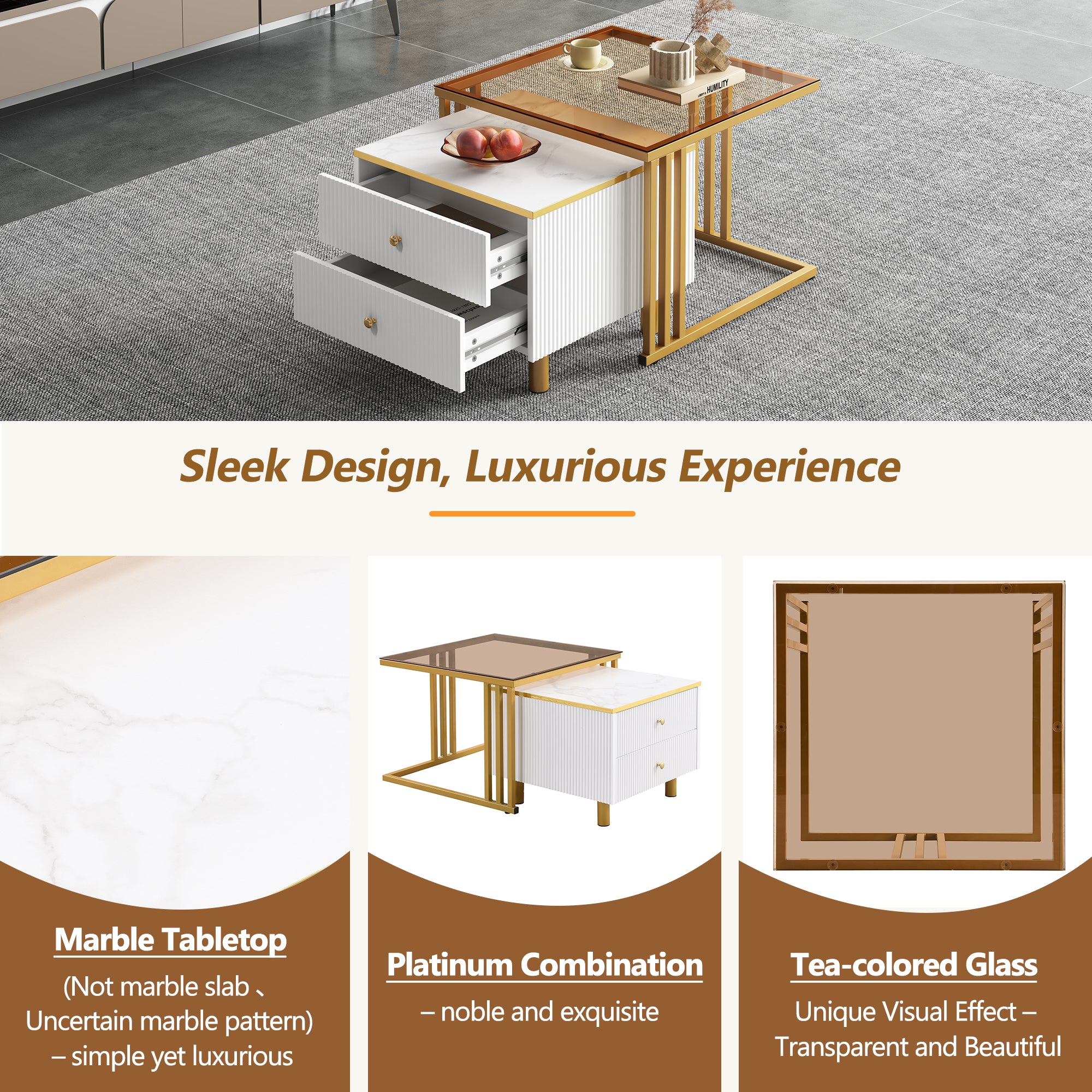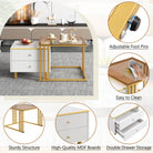 Coffee Table Set of 2, Nesting Coffee Table with Marble Pattern, Modern Gold Nesting Side Table