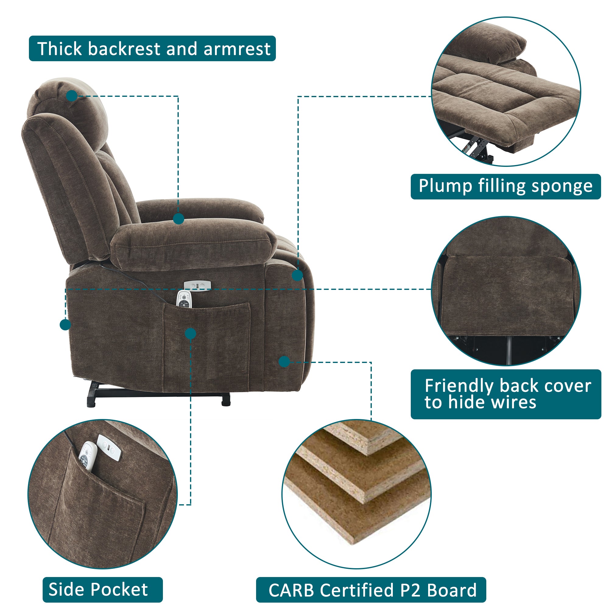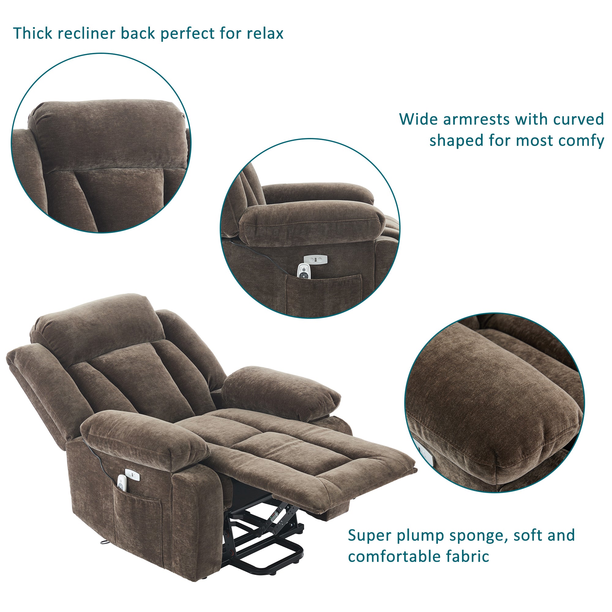 Electric Power Lift Recliner Chair Sofa with Massage, Heat, Heavy Duty Safety Motion, Storage Pocket, Cup Holders, USB Ports, Fabric
