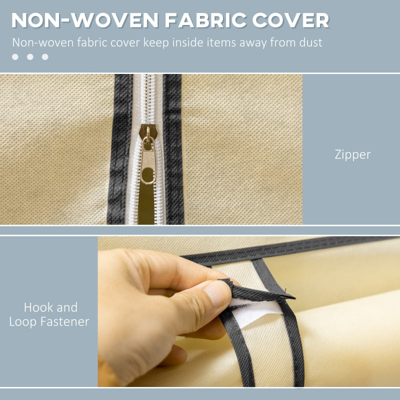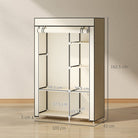 Designed as a temporary storage solution, this portable wardrobe is constructed with a metal frame and a fabric cover. It can be easily set up and taken down, allowing you to move it and use it wherever needed.