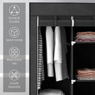 Fabric Wardrobe with Rails and Shelves - Black