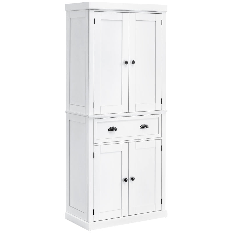 Freestanding Kitchen Cupboard, 184cm Tall 4-Door Pantry with Drawer, White