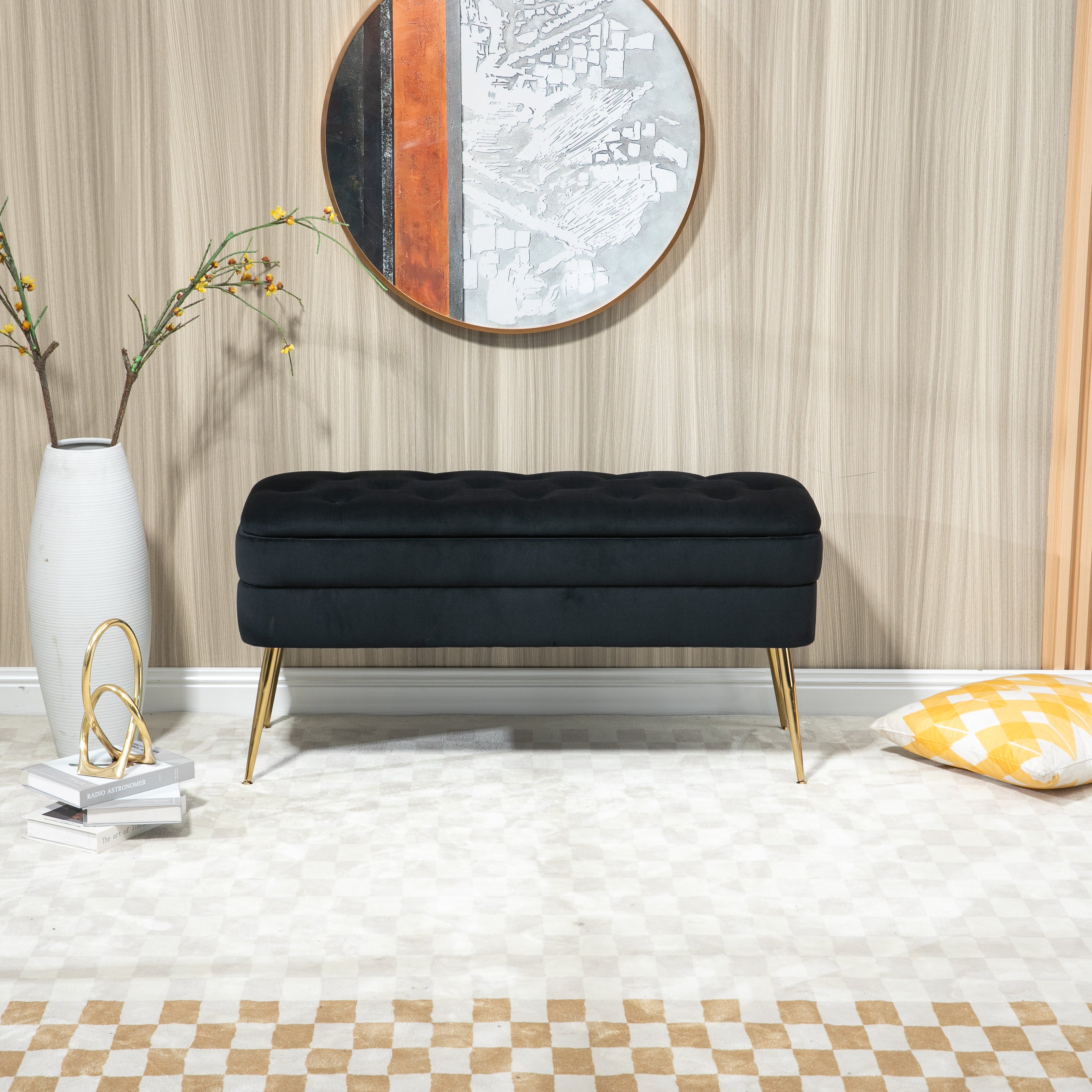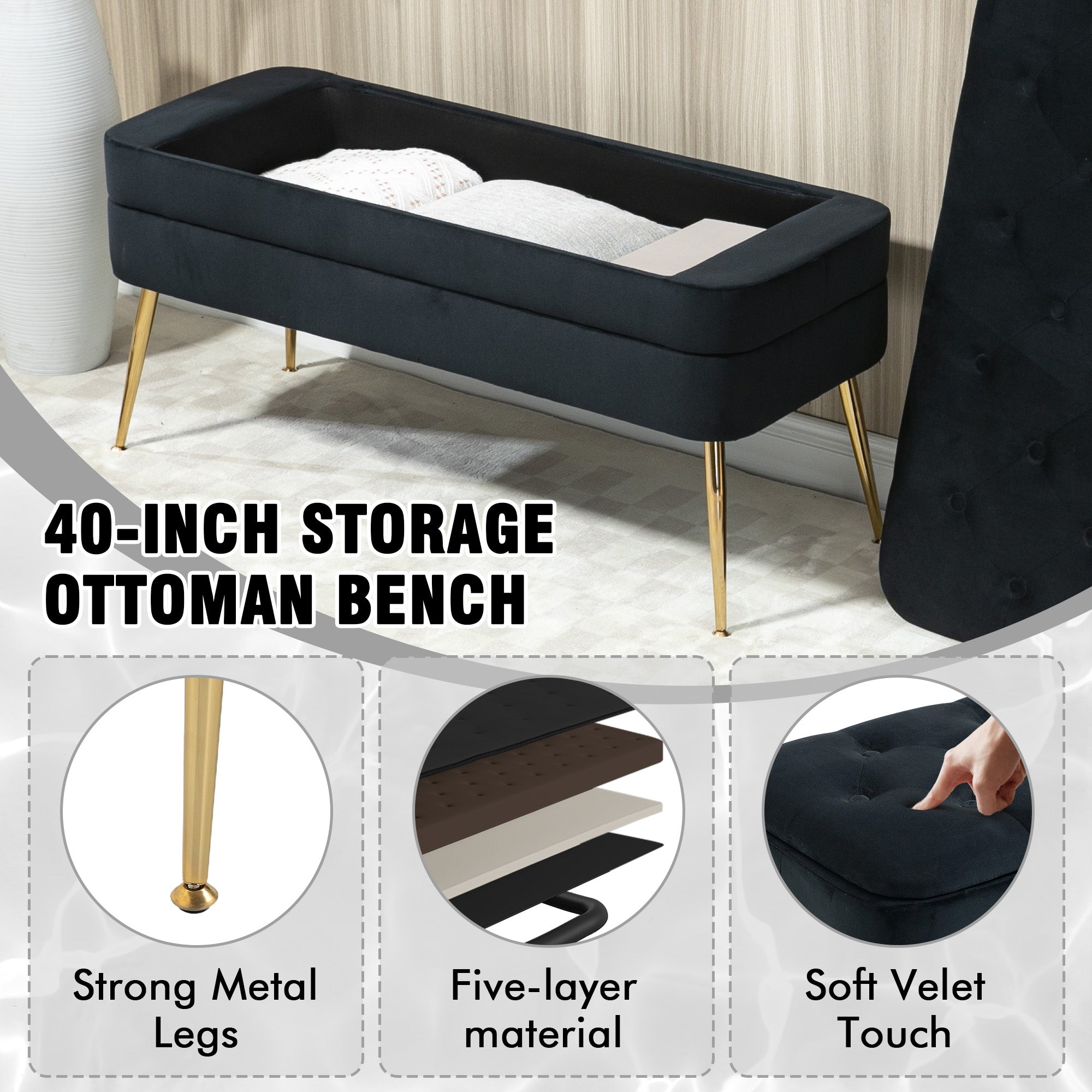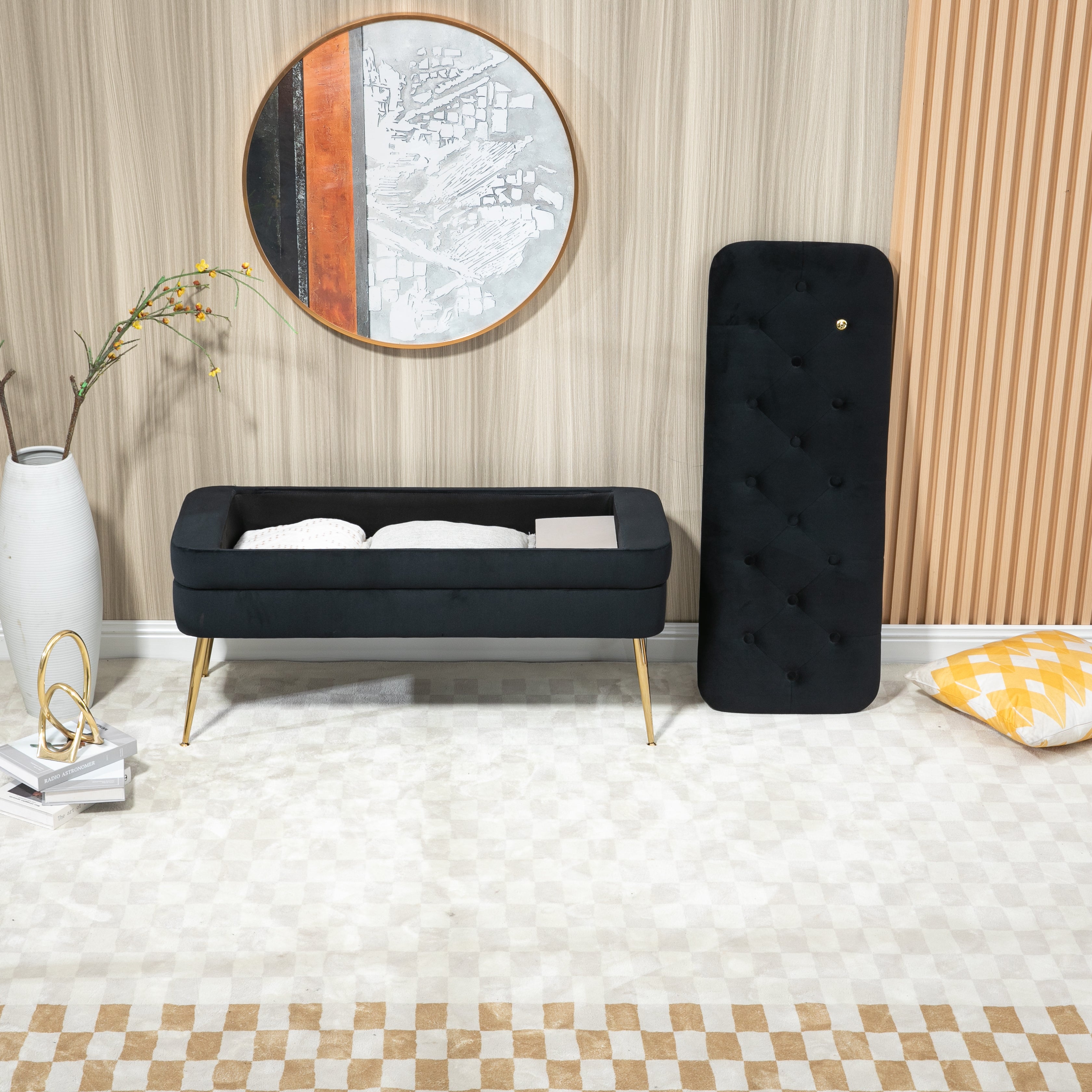 GOMYWAY Storage Ottoman Bench, Velvet Upholstered, Black
