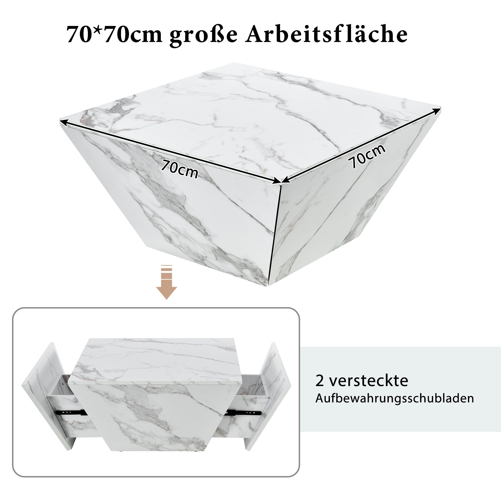 Product Name:Marbling Veneer (PVC)Coffee Table for Living Room Tea Table Large Side Table with 2 Cabinet White Square Nesting Table Side Table Wooden Centre Table Console Sofa Table with Storage 70*70*36cm