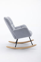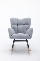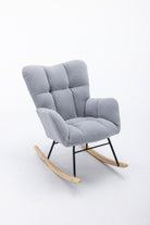 Mid Century Modern Teddy Fabric Tufted Upholstered Rocking Chair Padded Seat, Light Grey