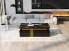 Modern Black Rectangular Coffee Table with Marble Pattern (Triamine Board) Top and 2 Wooden Drawers, Particle Board
