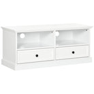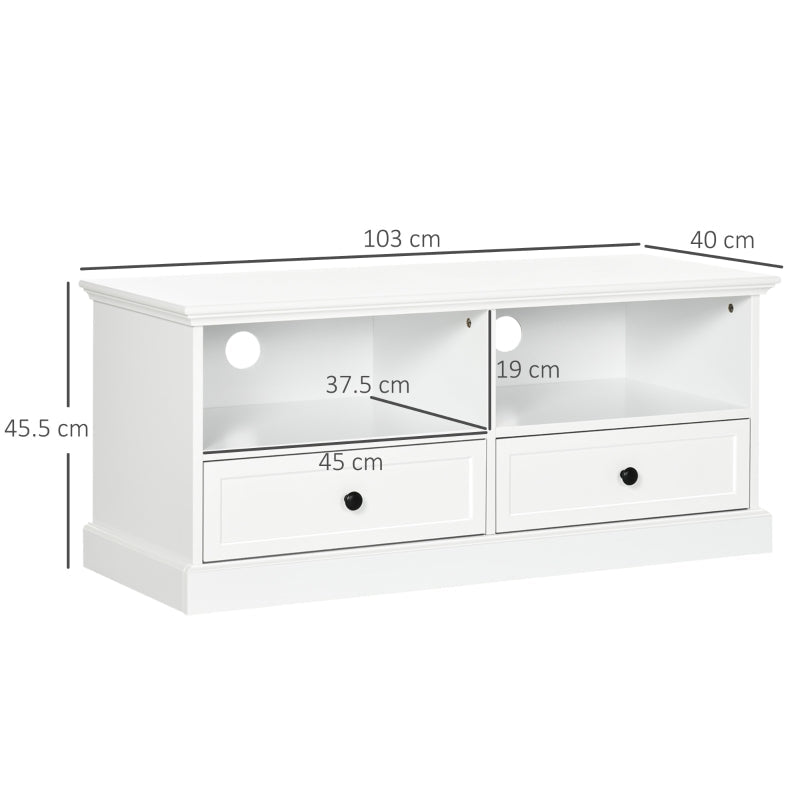 Modern TV Unit Cabinet for 45 Inch TVs, with Drawers, Open Shelves, Cable Holes, White