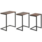 Nesting Side Tables Set of 3, C-Shaped Snack Tables Steel Frame, Rustic Brown