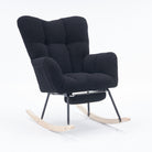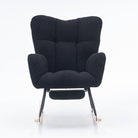 New Modern Teddy Fabric Tufted Upholstered Rocking Chair with Pull-Out Footrest, Black