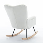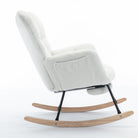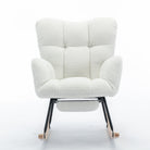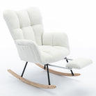 New Modern Teddy Fabric Tufted Upholstered Rocking Chair with Pull-Out Footrest, White