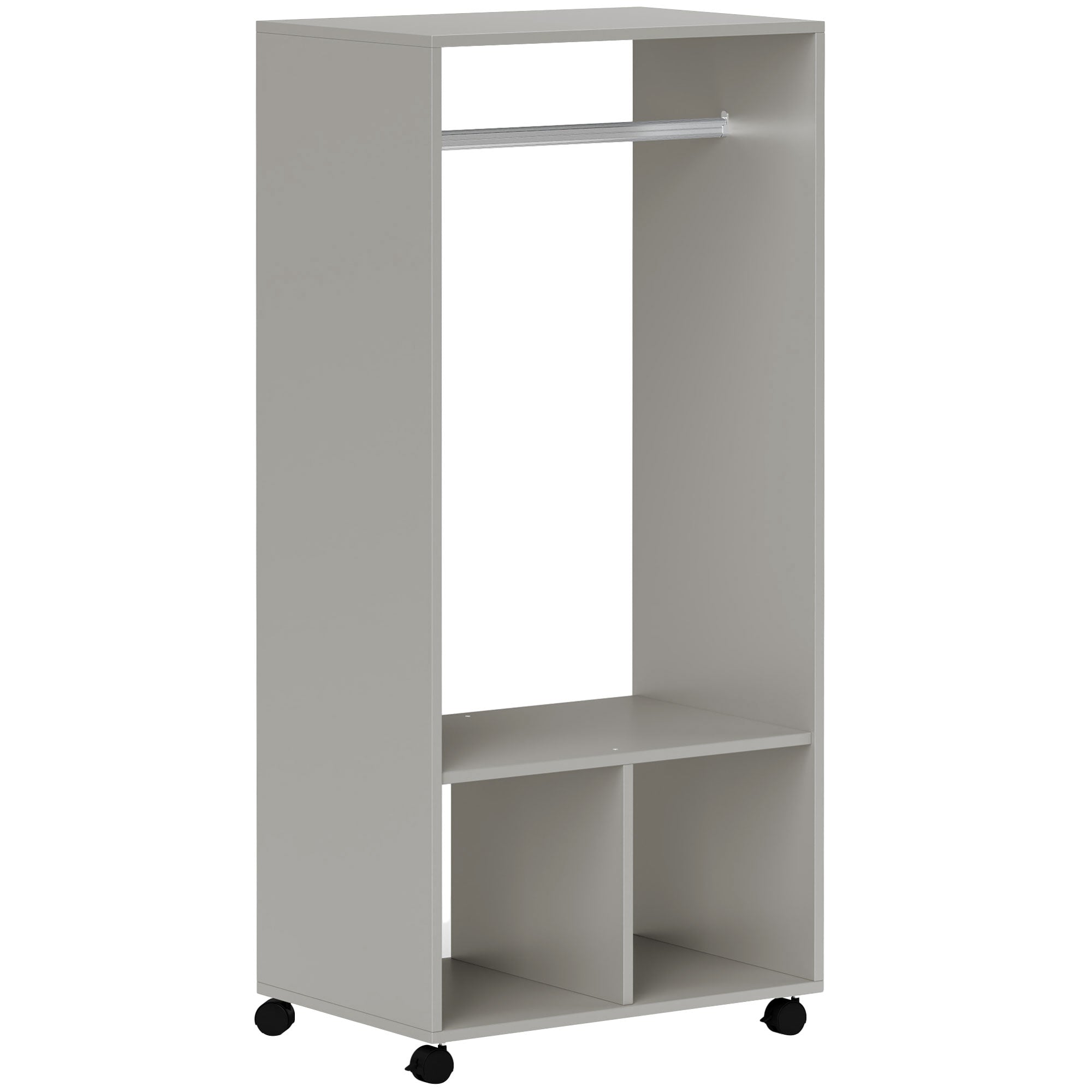 Open Wardrobe, Mobile Garment Rack with Hanging Rail and 2 Shelves, Grey