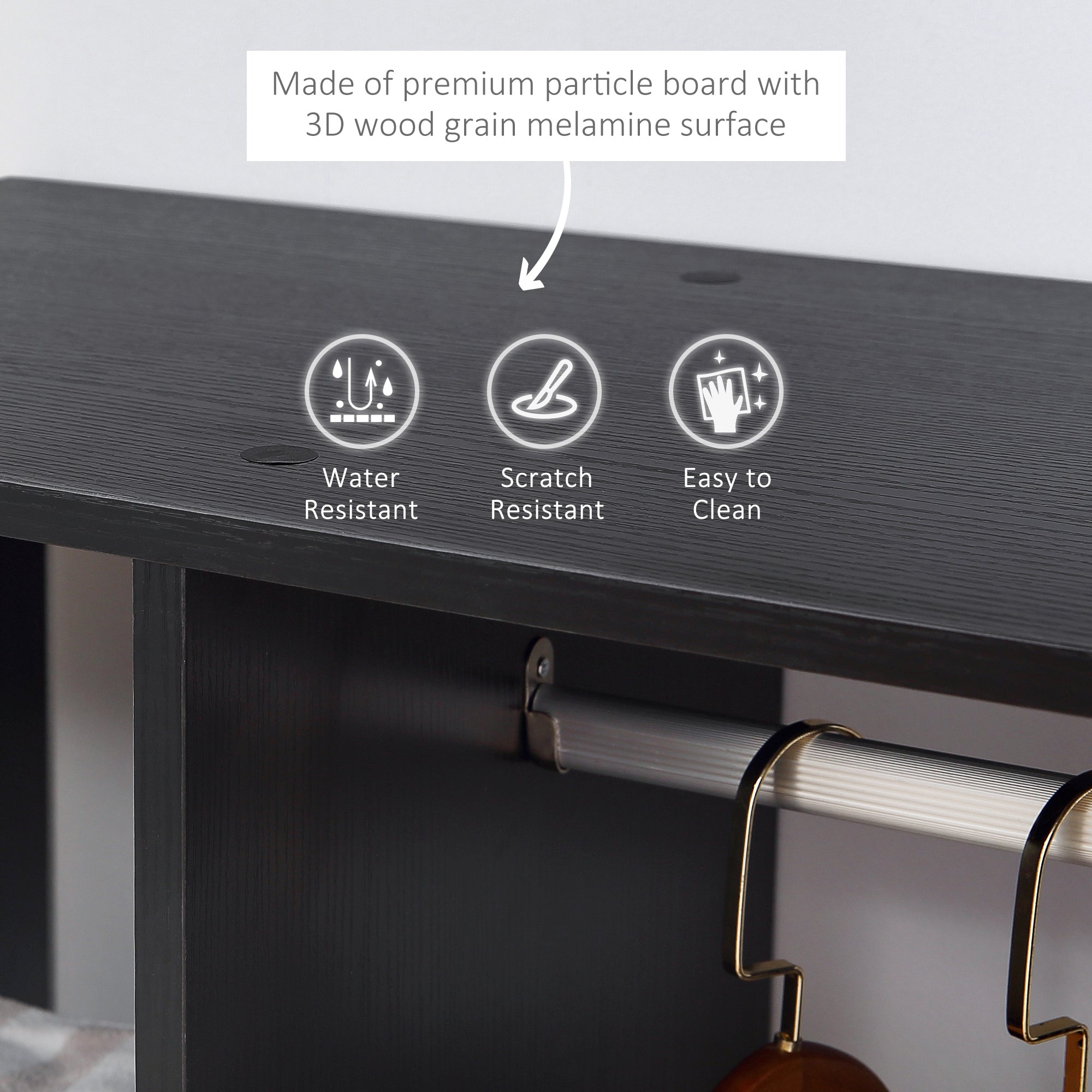 Particle Board Frame: Robust and long-lasting structure. This open wardrobe for the bedroom features a melamine top coat for a sleek, hassle-free cleaning experience.