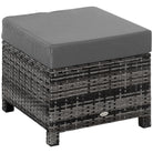 Rattan Footstool Wicker Ottoman with Padded Seat Cushion, Grey
