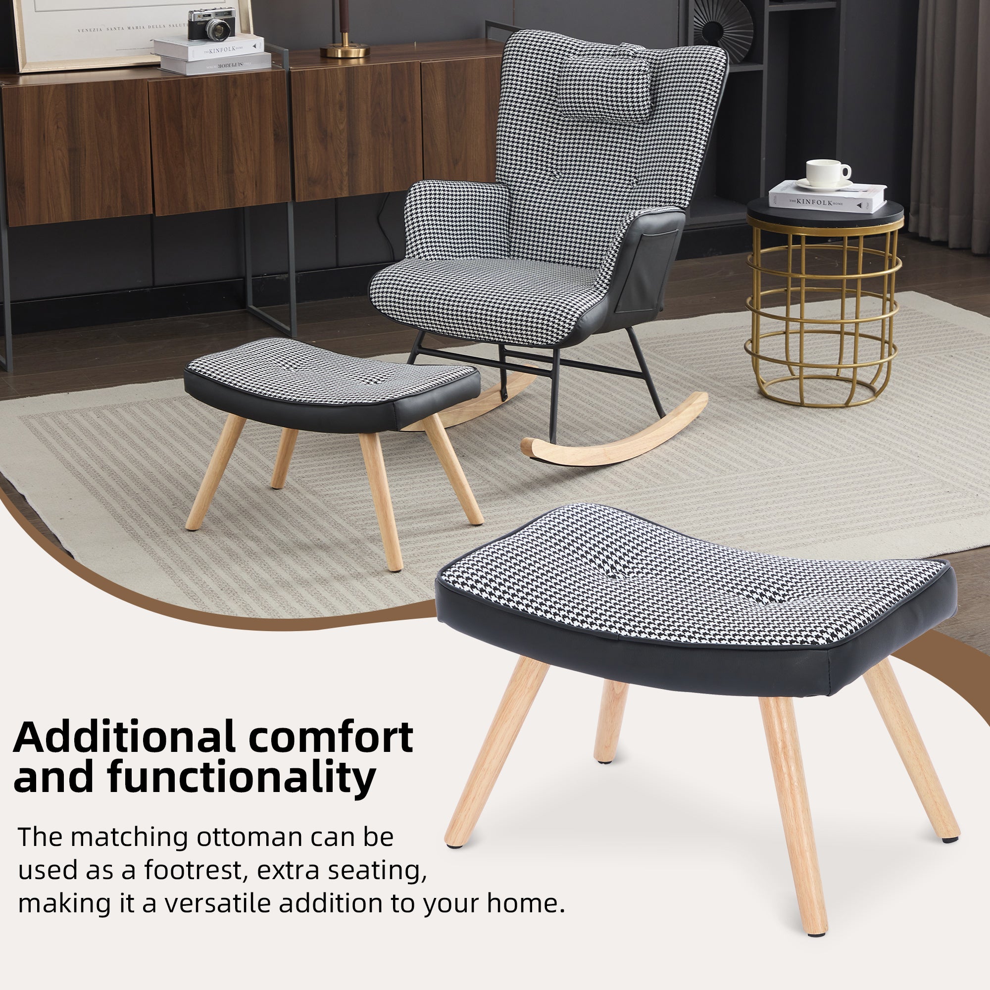 Rocking Chairs for Adults, Fabric Relaxing Recliner Chair with Solid Wood Legs