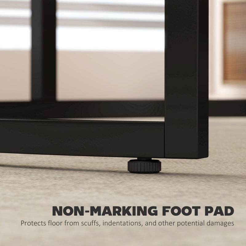 For a robust build, each frame is made from solid steel for sturdiness and includes protective foot pads. The MDF table tops are resilient to light, everyday wear.