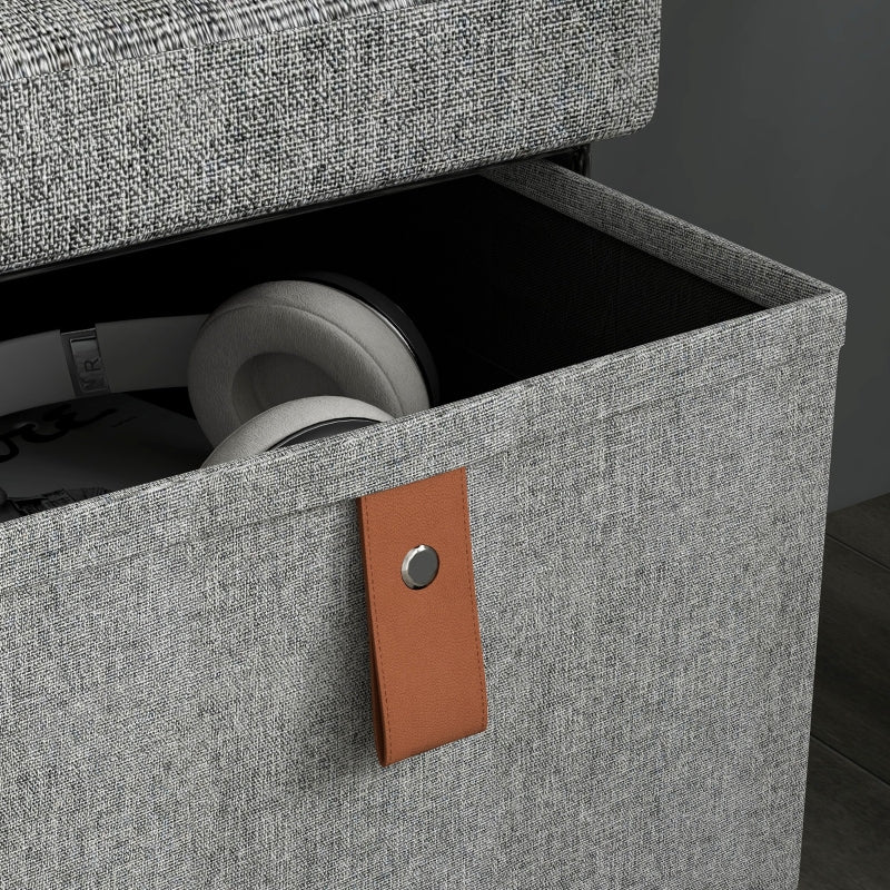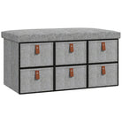 Shoe Bench with Cushion and 6 Drawers, Light Grey