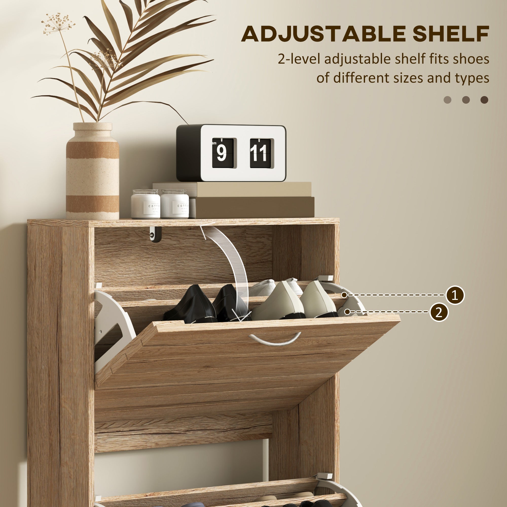 Shoe Storage Cabinet, 12-Pair Flip Drawer, Brown Wood-Effect
