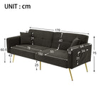 Sofa Bed with Bed Function, 3 Adjustable Backrest Angles, Gold Legs, Cushions, and Side Storage Pockets