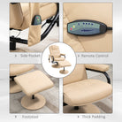 Swivel Recliner Chair and Footstool, 10-Point Faux Leather Massage Armchair, Cream