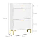 This shoe storage unit offers a 12-shoe pair capacity with three drawers: two flip drawers and one top drawer. It can accommodate shoes up to a maximum size of UK 9.5.