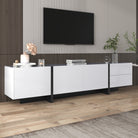 TV Cabinet, Low Panel with Colorblocked Legs, Doors & Drawers, High-Gloss White and Black