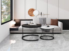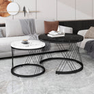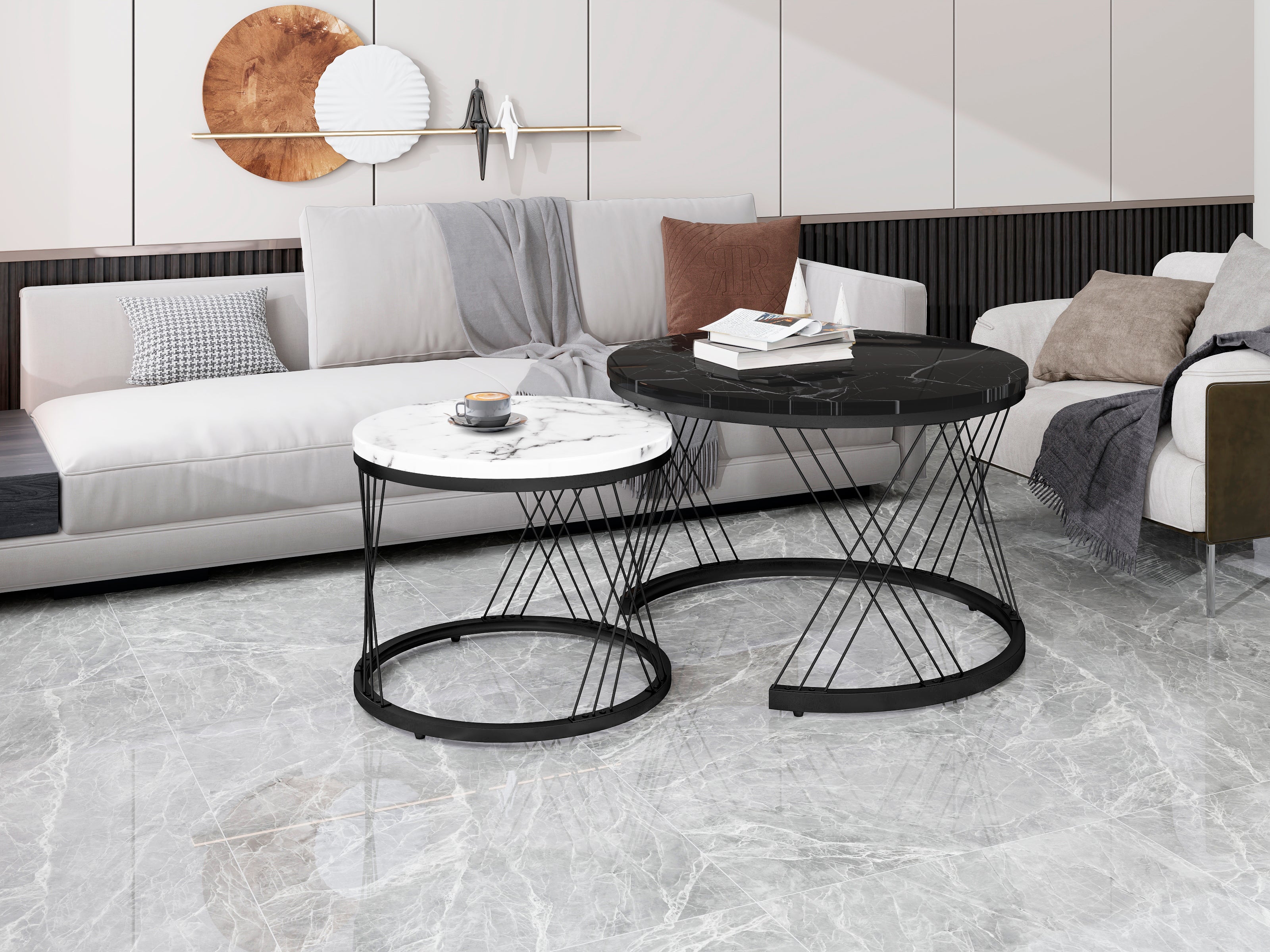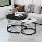 WF307775BAA Round Coffee Table, Modern Set of 2 with Marble Pattern Top and Metal Frame, White and Black
