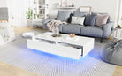 White High Gloss LED Coffee Table with 16 Colors LED Lights and 2 Drawers