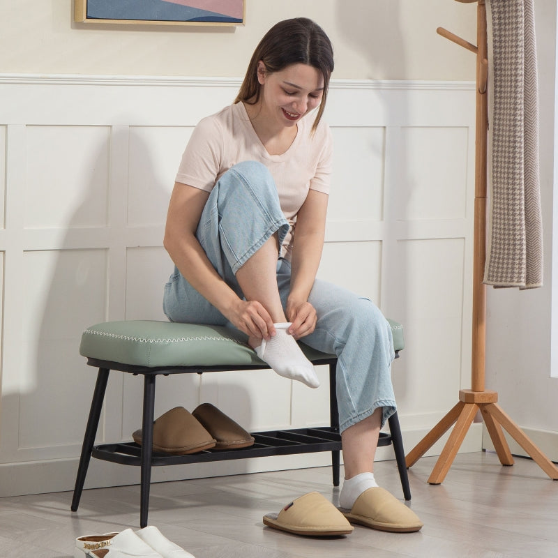 Shoe Storage Bench with Comfortable Cushion, Green PU Leather