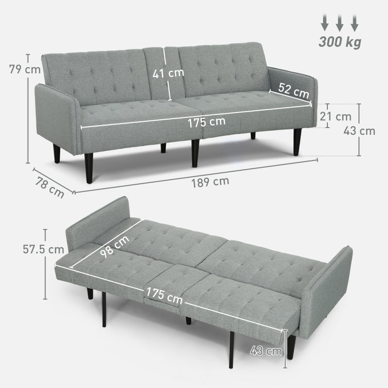 2 Seater Sofa Bed, Convertible with Hidden Storage, Linen Light Grey