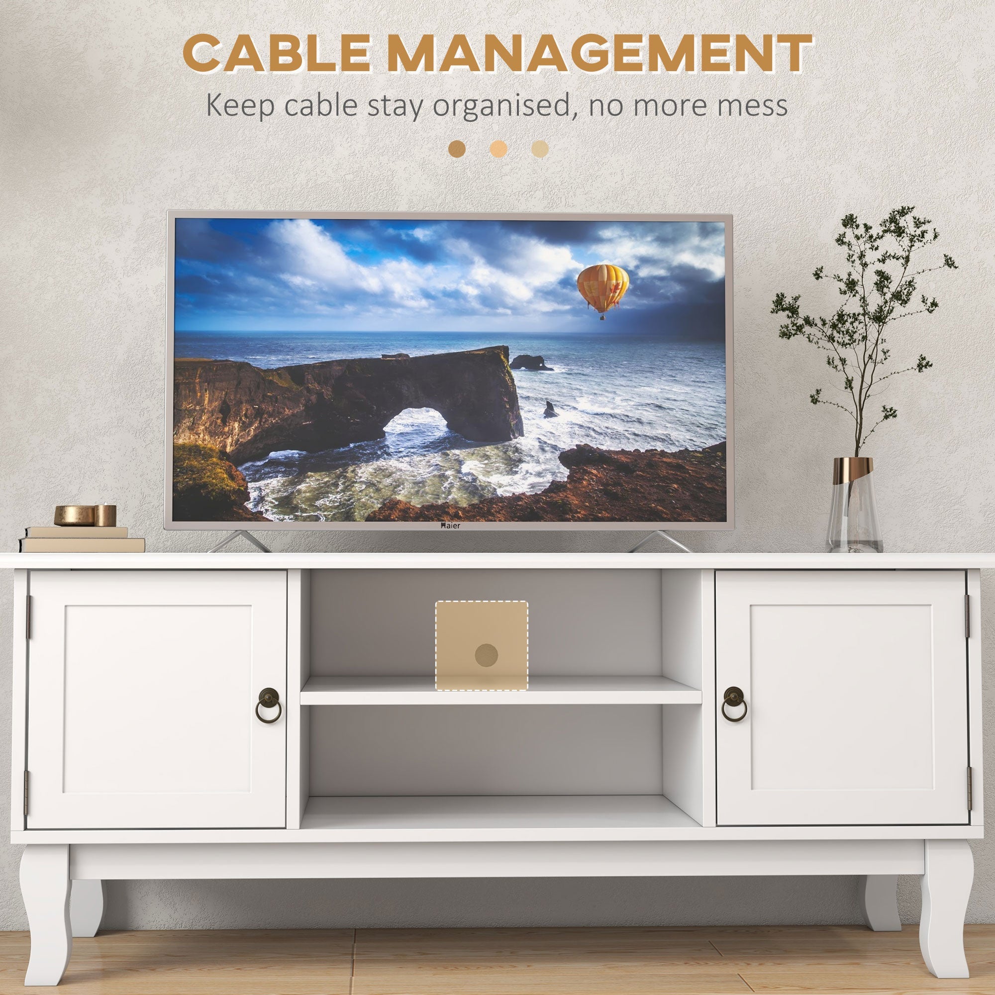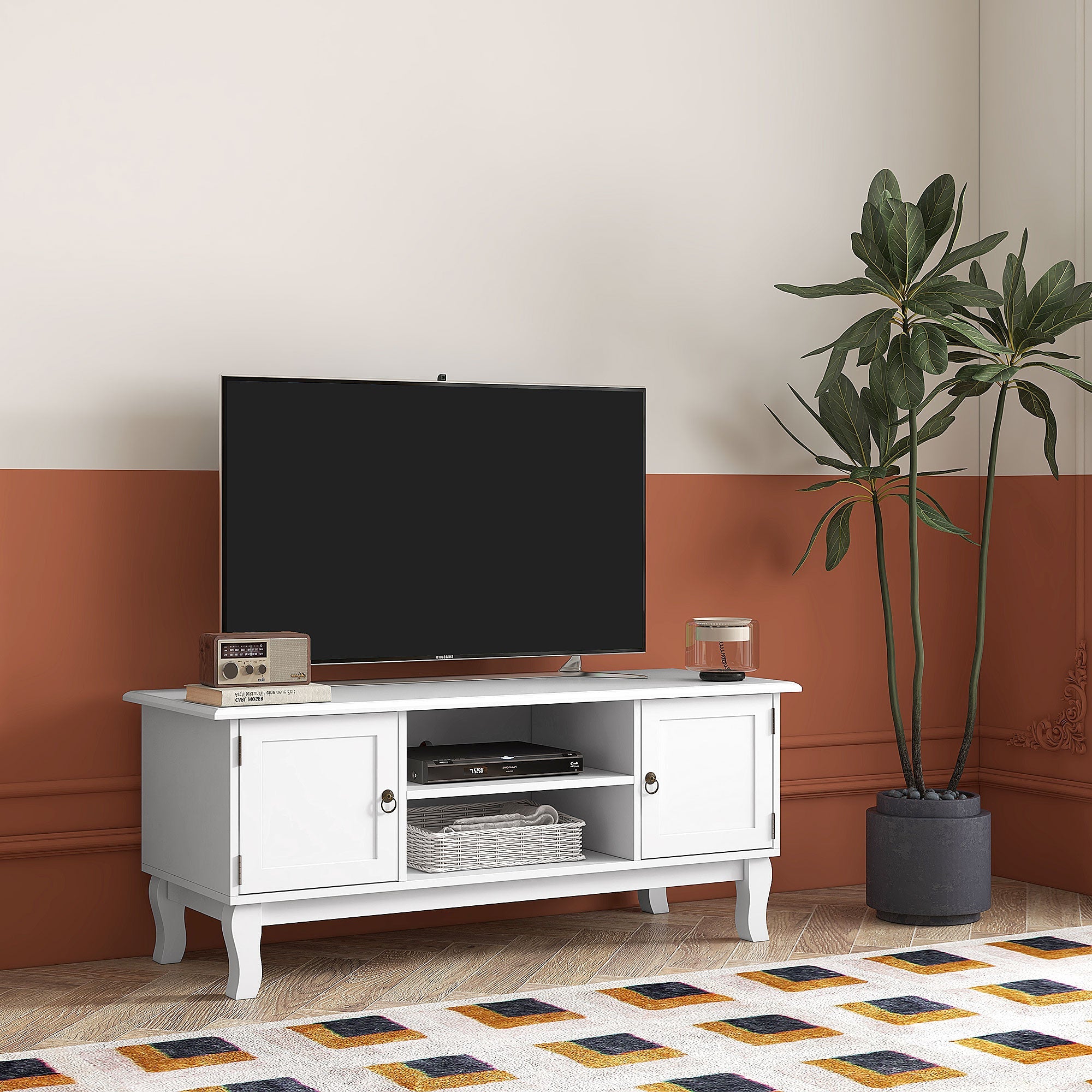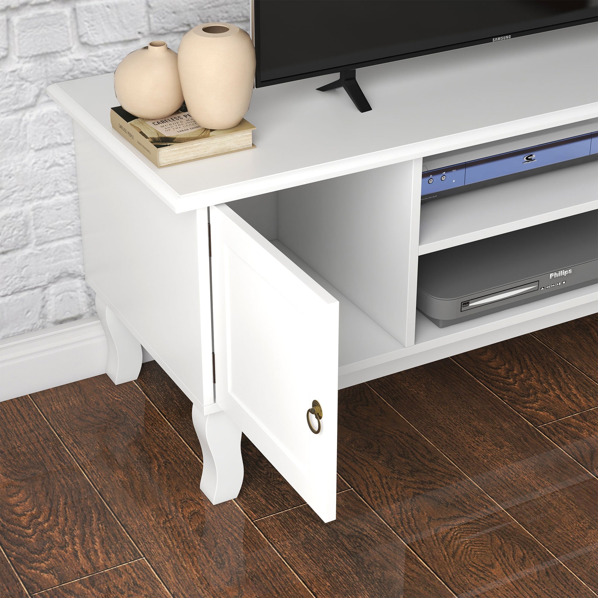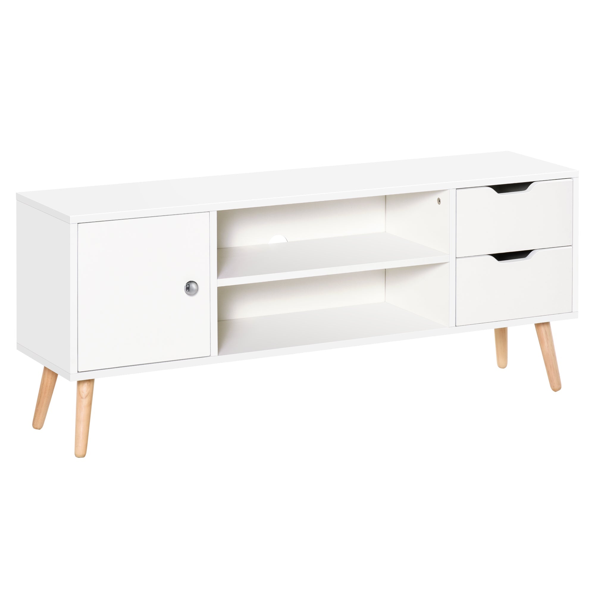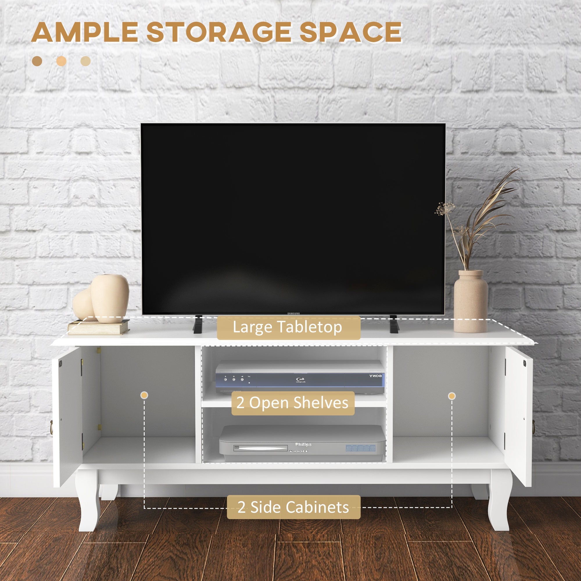 TV Unit 55" Cabinet, 2 Doors Open Storage Cable Management, White