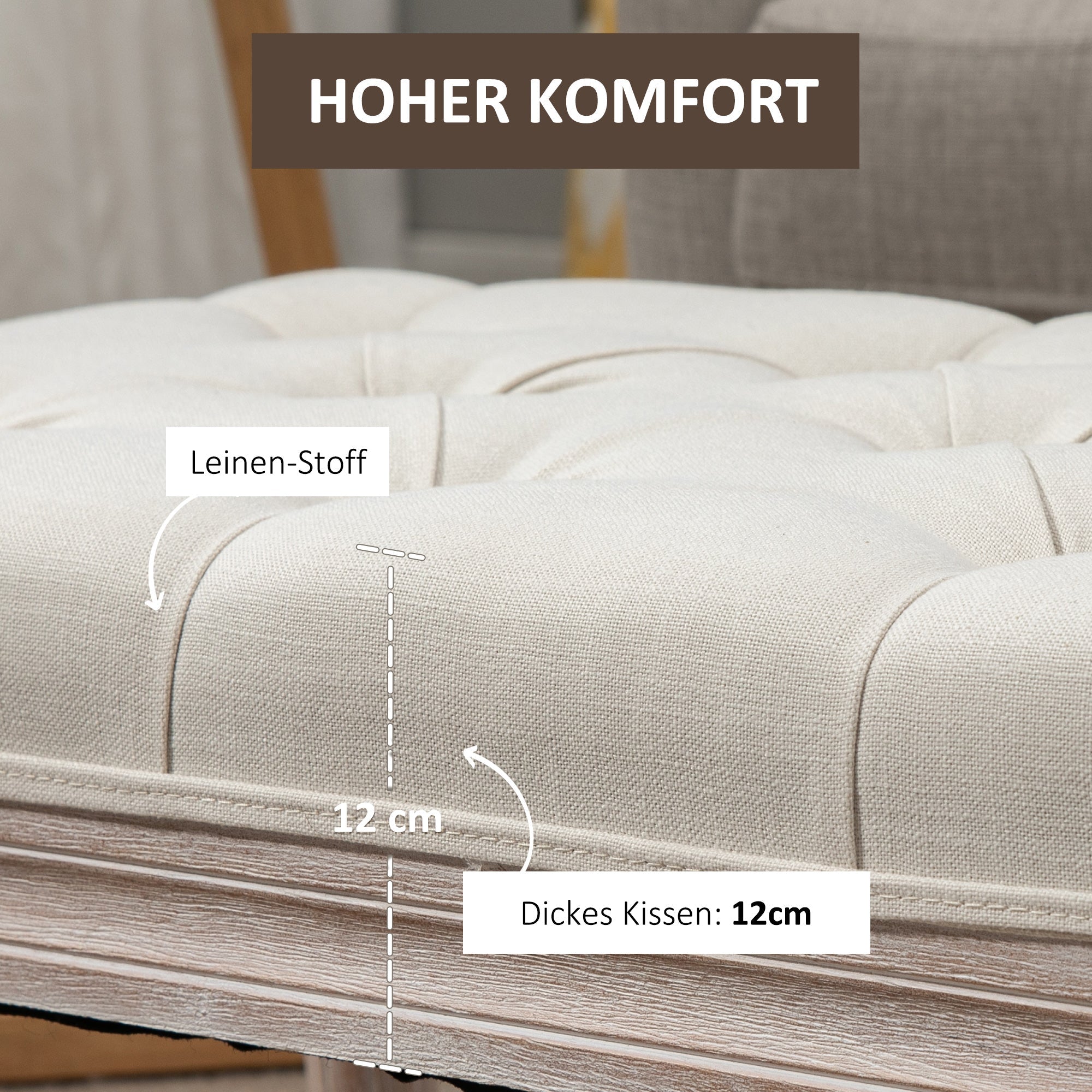 End of Bed Bench, 80cm Tufted Window Seat for Bedroom/Hallway, Cream White